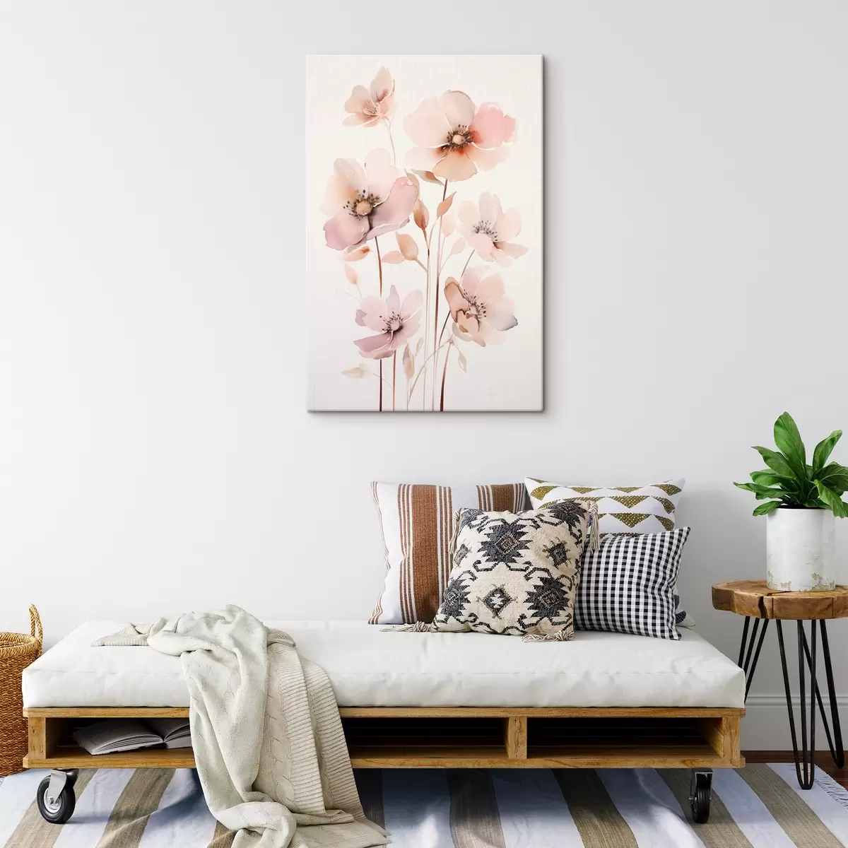 Fototapete Aquarell rosa Blumen auf dünnen Stielen s45701