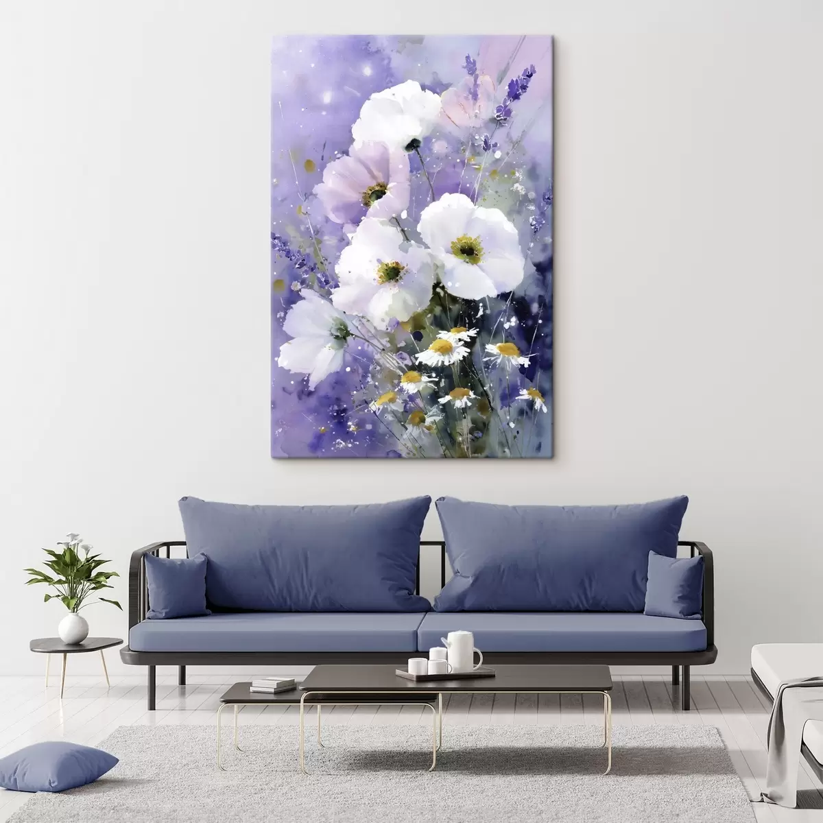 Fototapete aquarellstrauß in Lila- und Weißtönen s45719