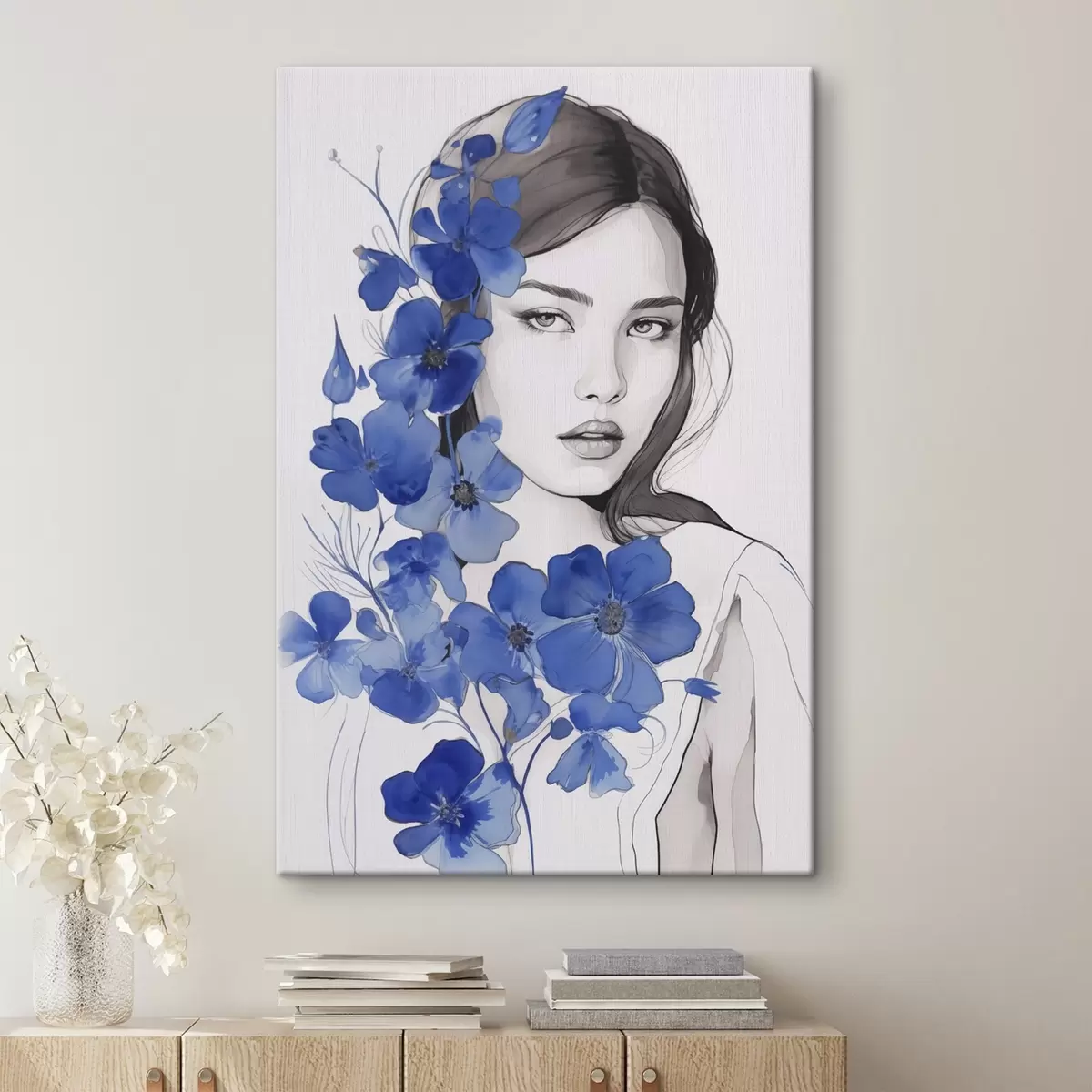 Gemälde Mädchen und blaue Blumen Art. s45757