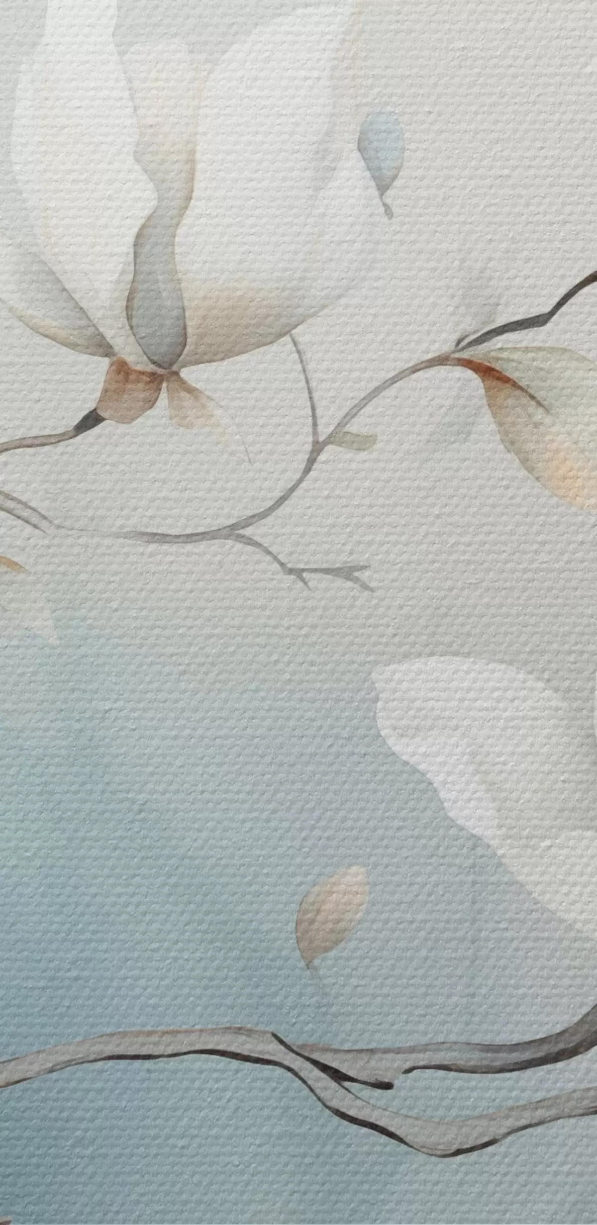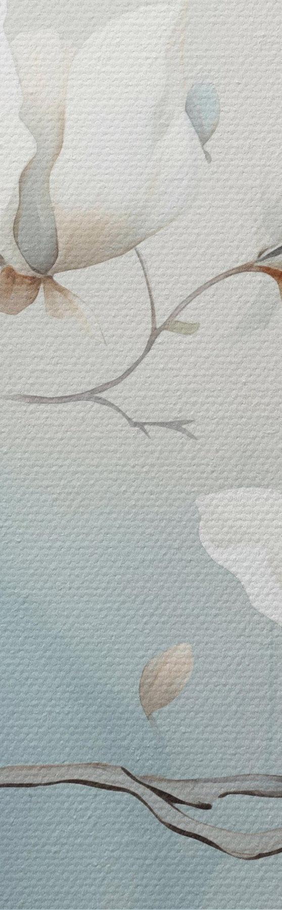 Fototapete Magnolienzweige mit weißen Blüten vor einem zarten Hintergrund s45806