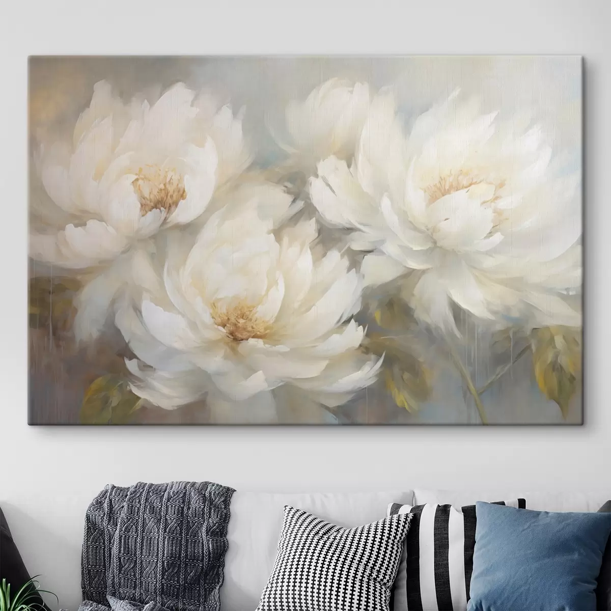 Gemälde Drei üppige weiße Pfingstrosen auf zartem Hintergrund Art. s45808