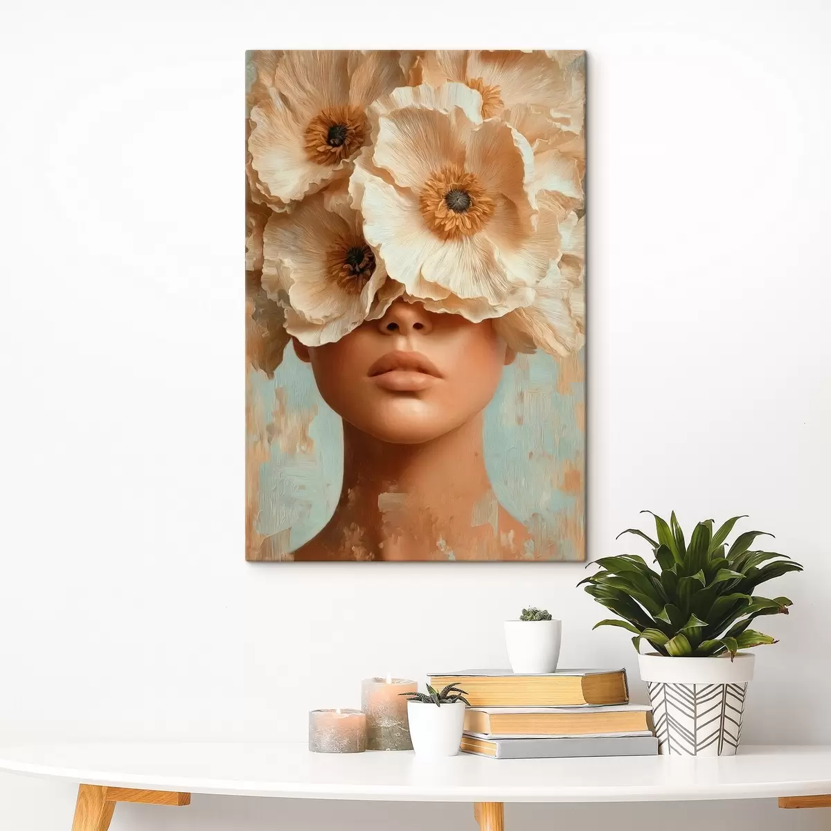 Gemälde Porträt mit beigen Blumen, die die Augen bedecken Art. s45870