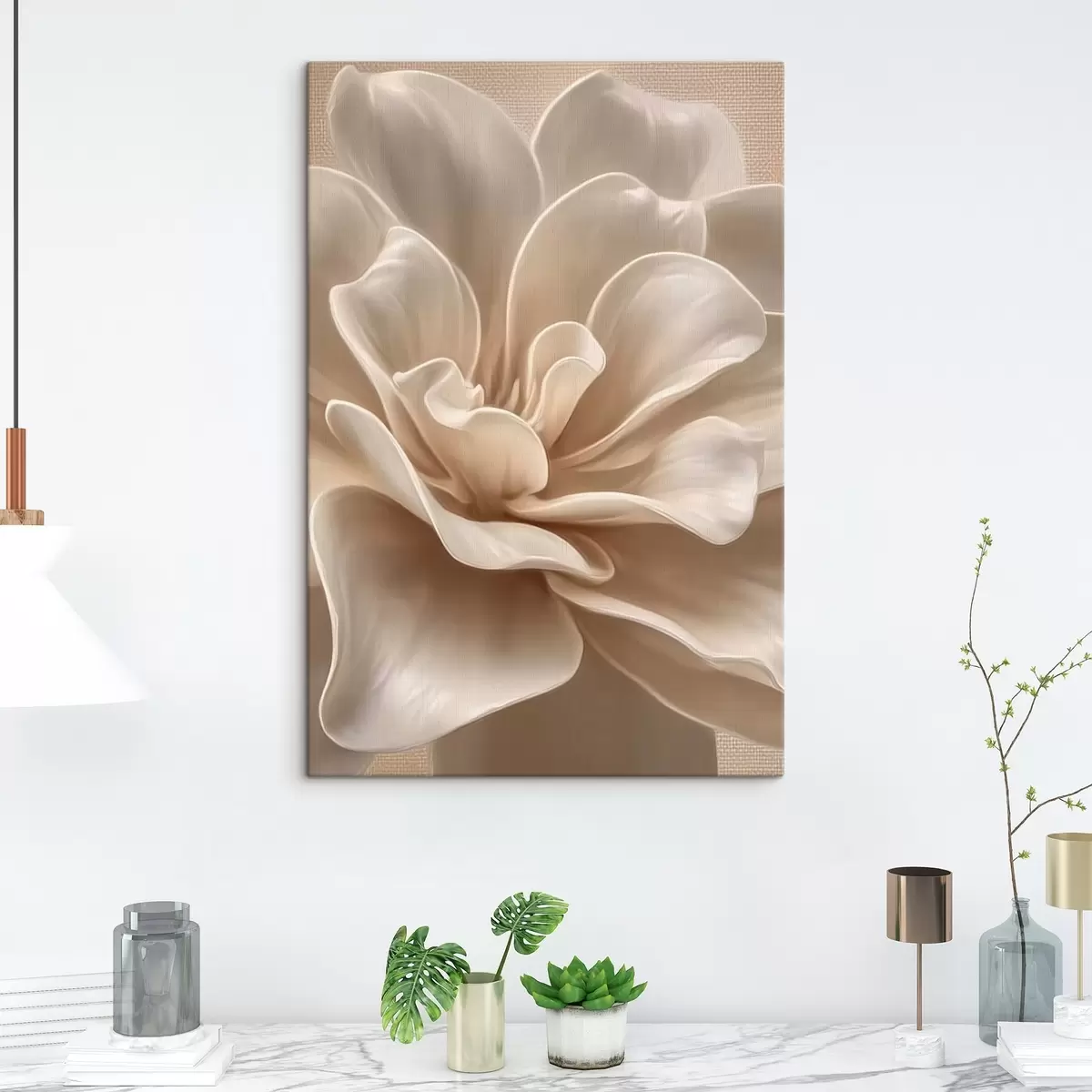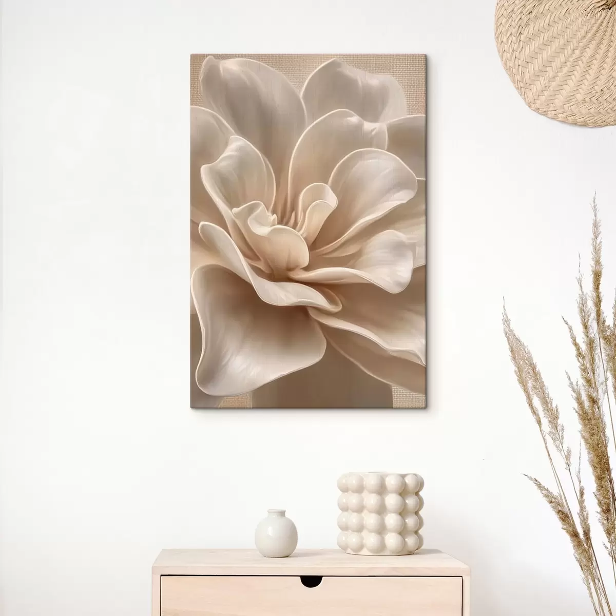 Gemälde Große cremefarbene Blume, weiche Blütenblätter, Makroaufnahme Art. s45874