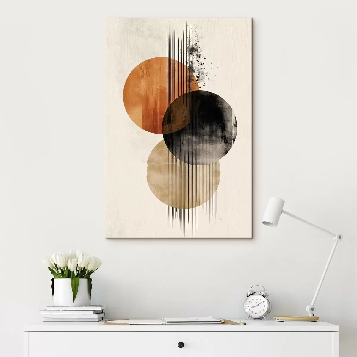 Gemälde Drei strukturierte Kreise mit Linien in einer terrakotta-schwarzen Farbpalette Art. s45885