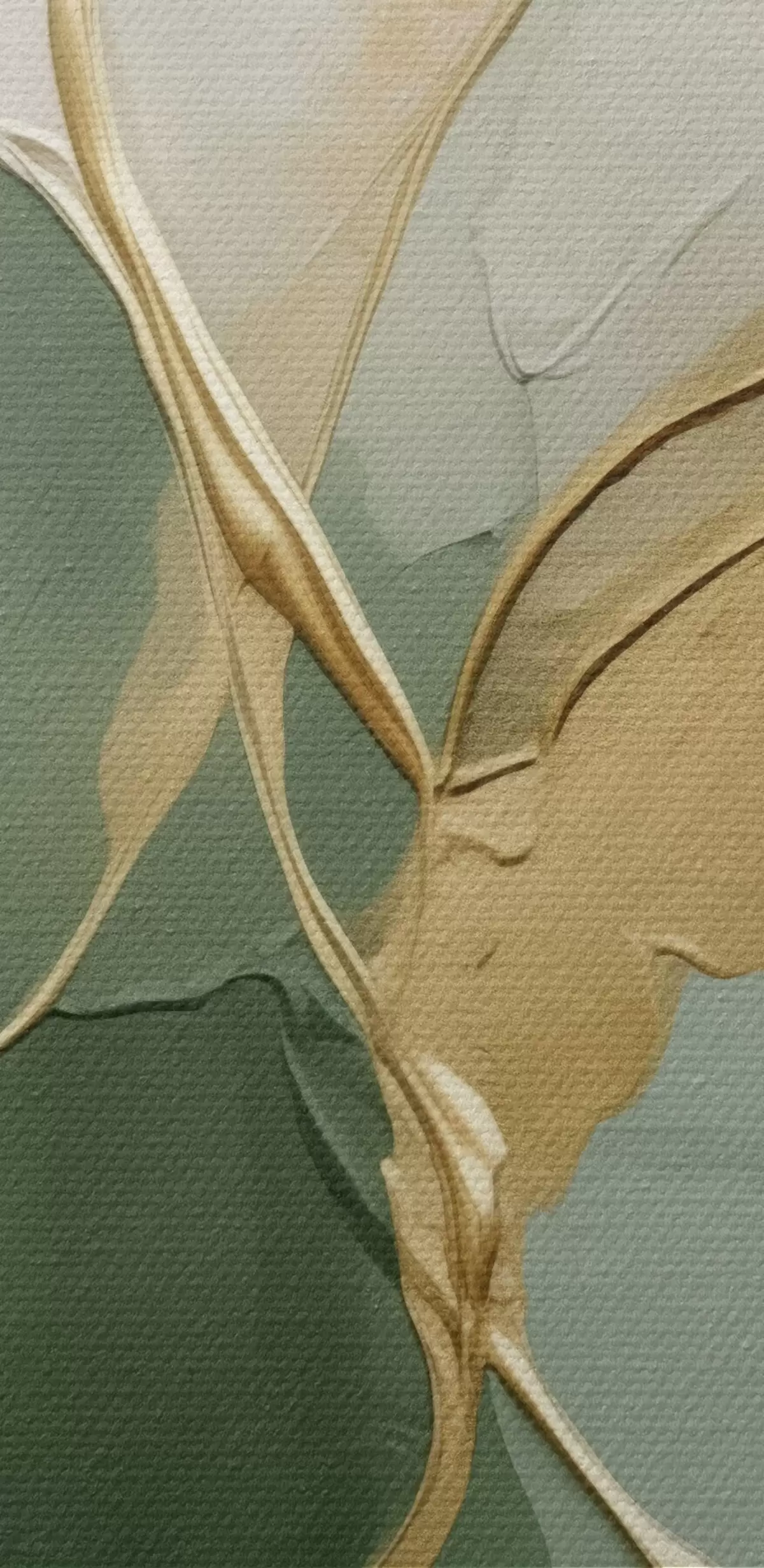 Gemälde Smaragdgrün-cremefarbene Abstraktion mit gelben Rinnsalen Art. s45887