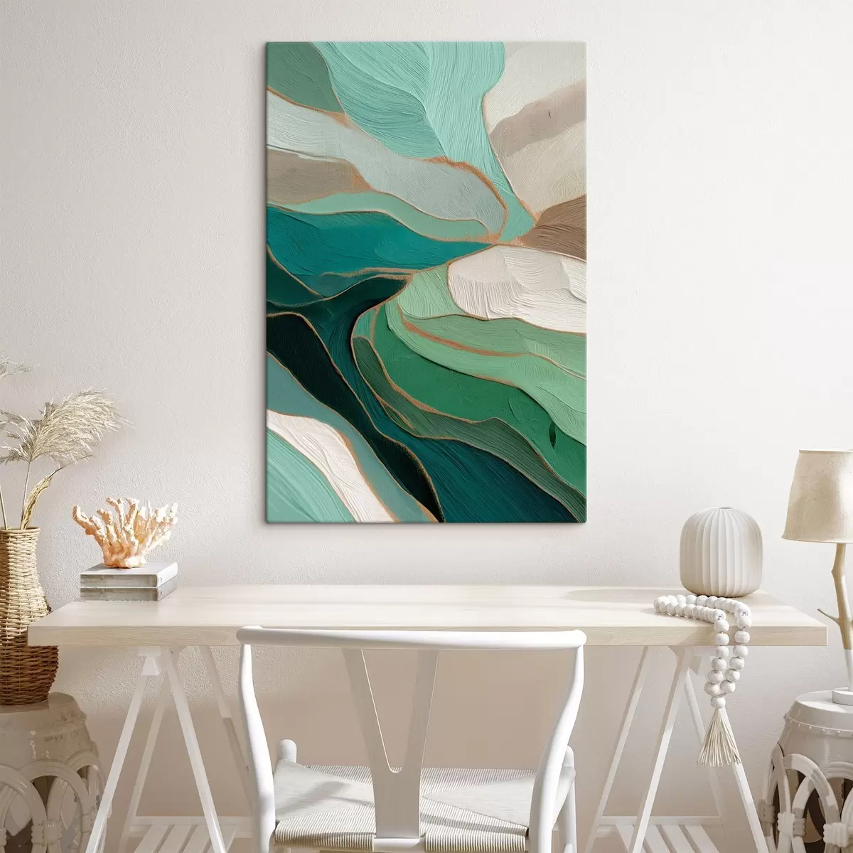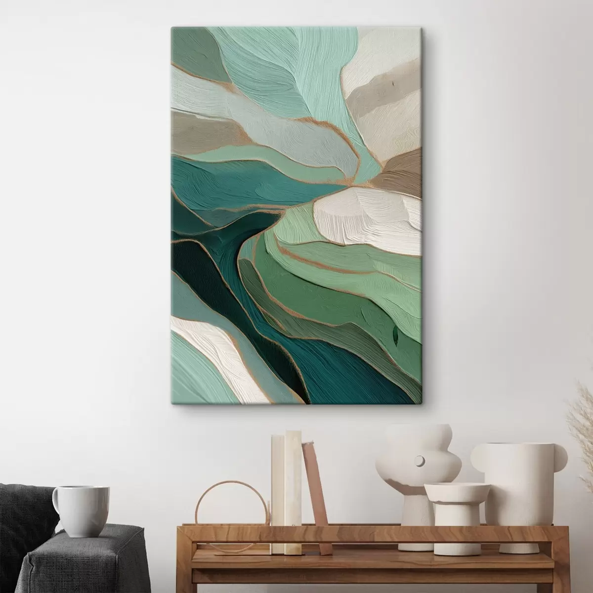 Gemälde Salbeigrüne Abstraktion mit gelbem Umriss Art. s45901