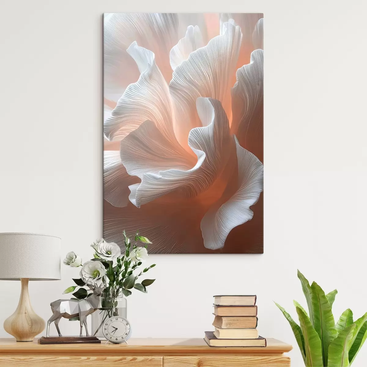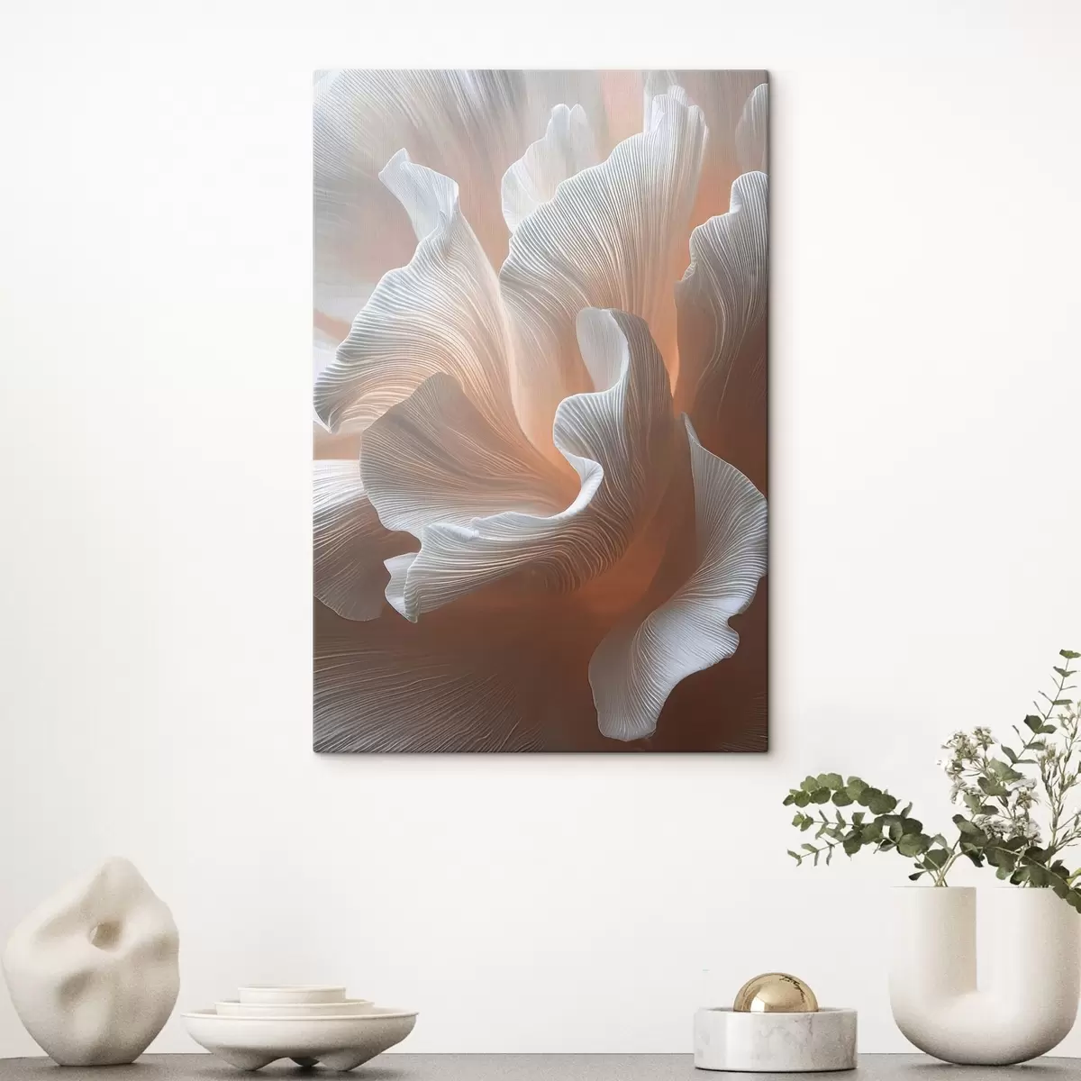 Gemälde Luftige weiße Blütenblätter mit warmem Pfirsichglanz Art. s45909
