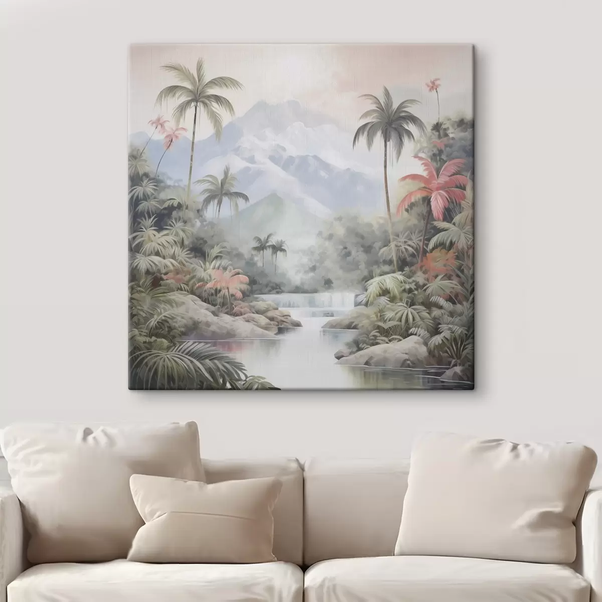 Gemälde Fluss im tropischen Wald vor Bergen Art. s45913