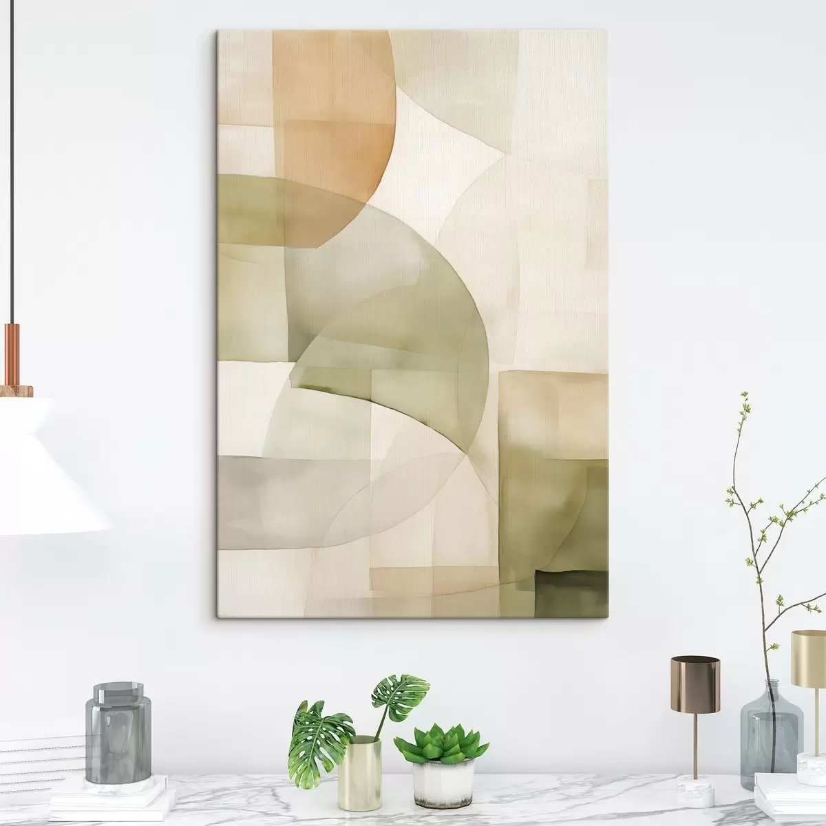 Gemälde Abstrakte geometrische Formen mit Aquarellstruktur in Grün-, Braun- und Beigetönen Art. s45929