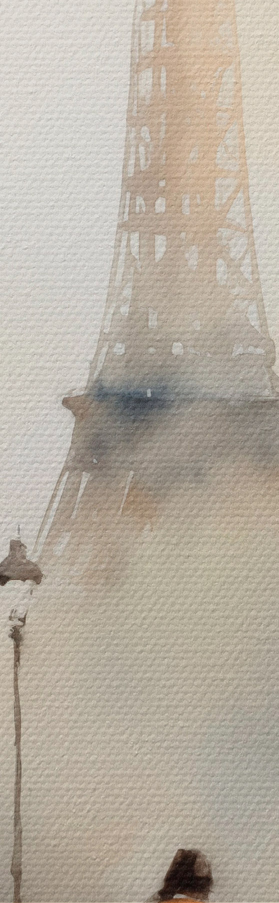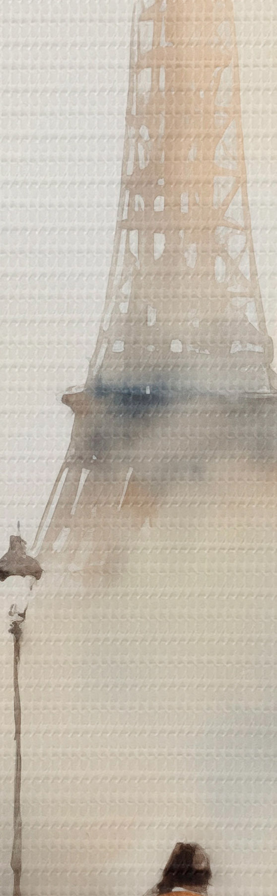 Gemälde Ein regnerischer Herbsttag in Paris mit dem Eiffelturm im Hintergrund und Vintage-Straßenlaternen Art. s45931
