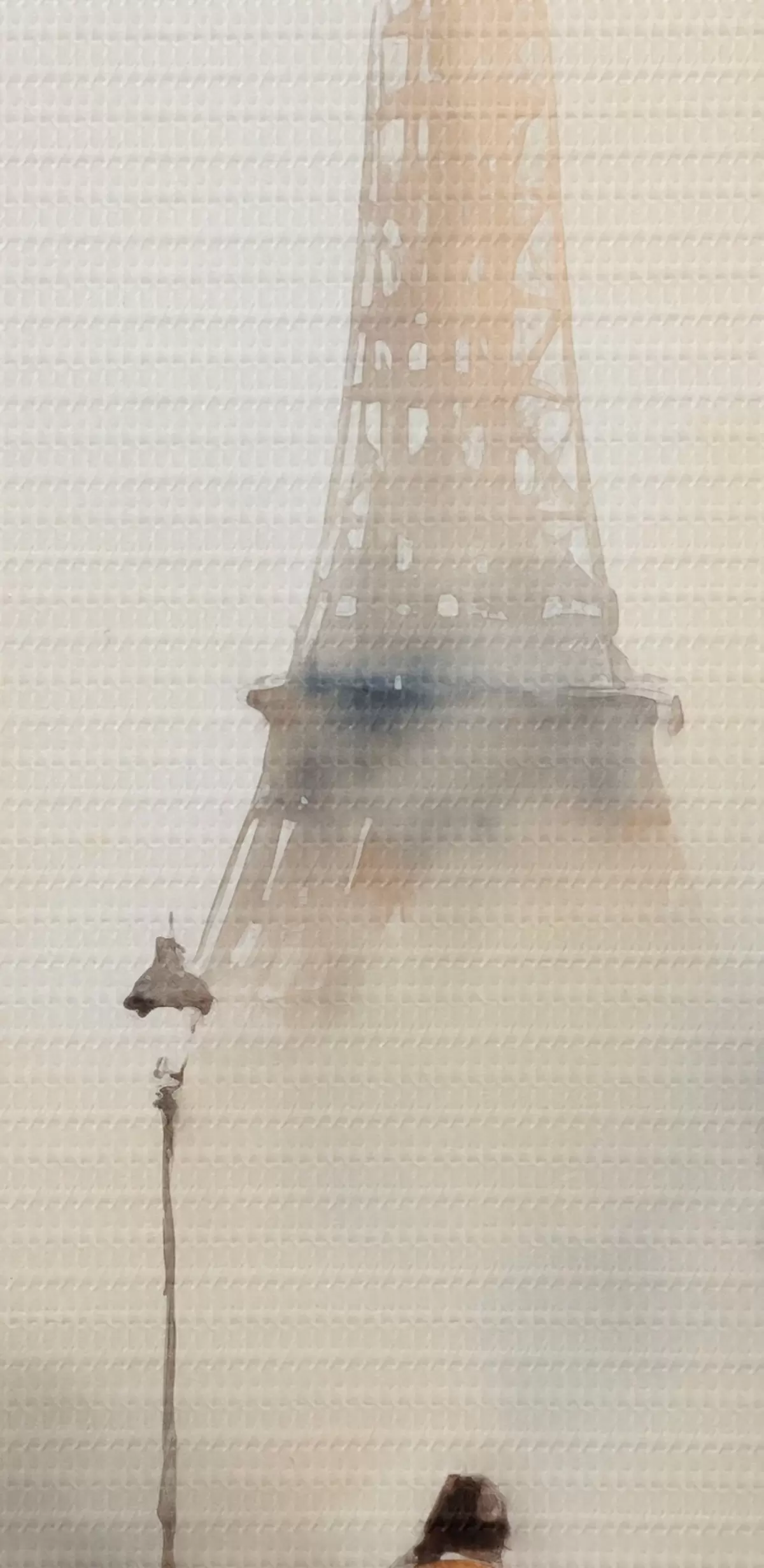 Gemälde Ein regnerischer Herbsttag in Paris mit dem Eiffelturm im Hintergrund und Vintage-Straßenlaternen Art. s45931