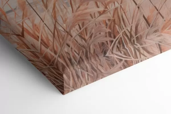 Gemälde Pampasgras mit pastelloranger Farbpalette, hellrosa Himmel, eine ruhige Landschaft Art. s45934
