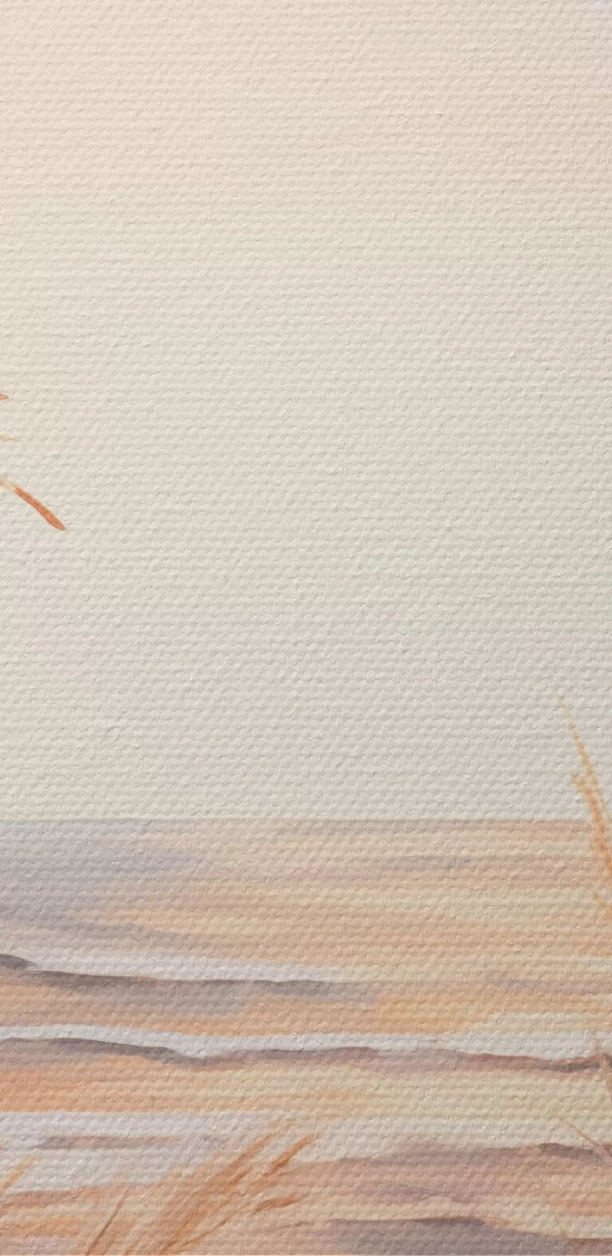Gemälde Pampasgras mit pastelloranger Farbpalette, hellrosa Himmel, eine ruhige Landschaft Art. s45935