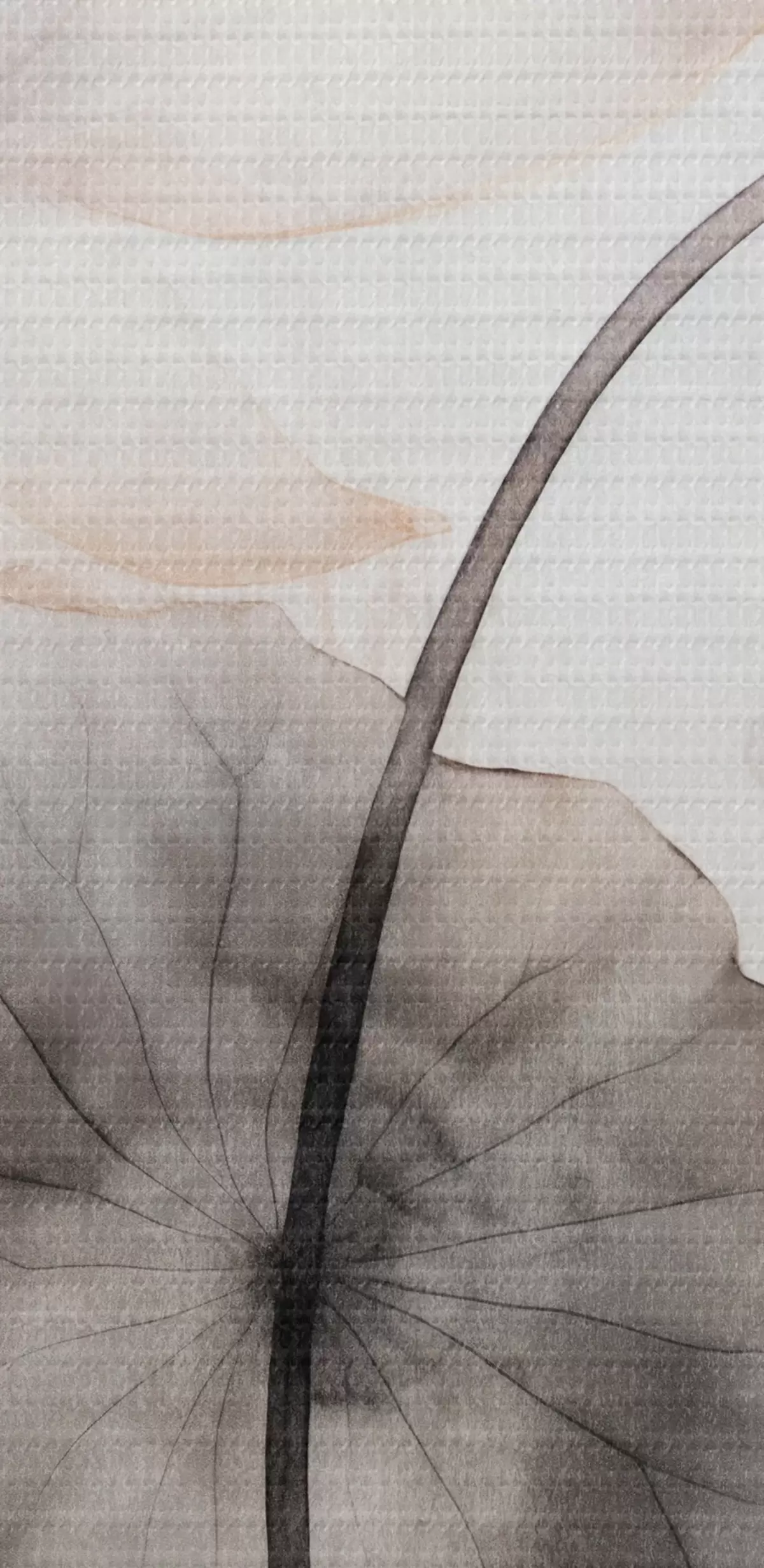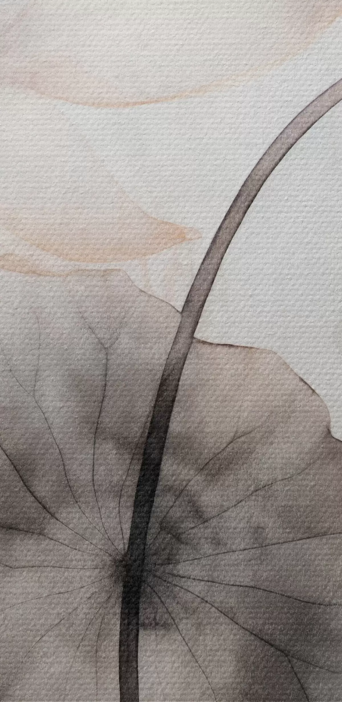 Gemälde Weiße Lotusblumen mit dunkler Blattstruktur, heller Hintergrund, minimalistisches Design Art. s45937