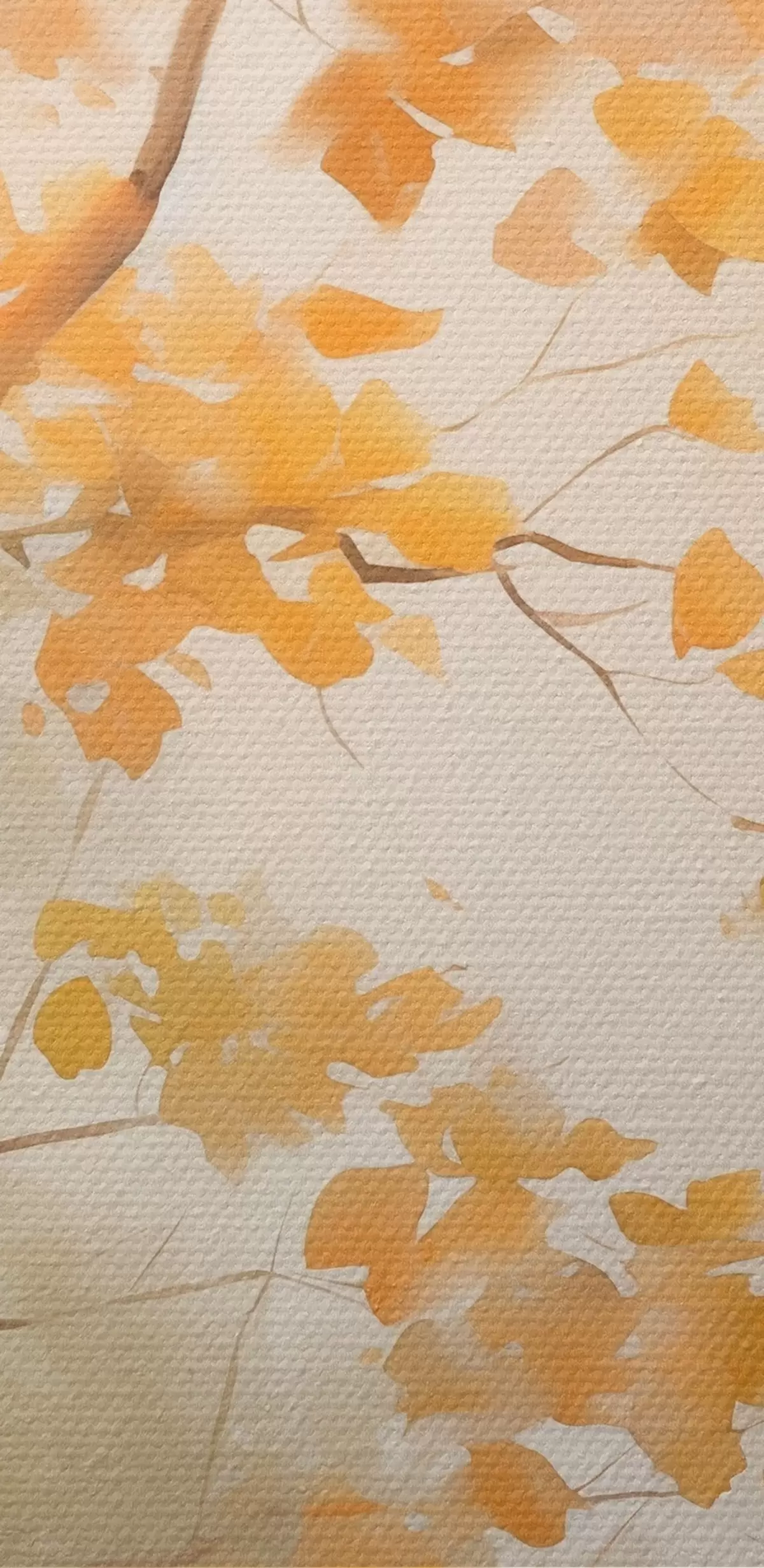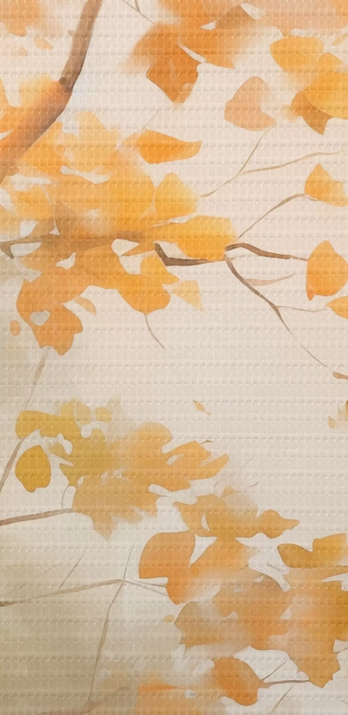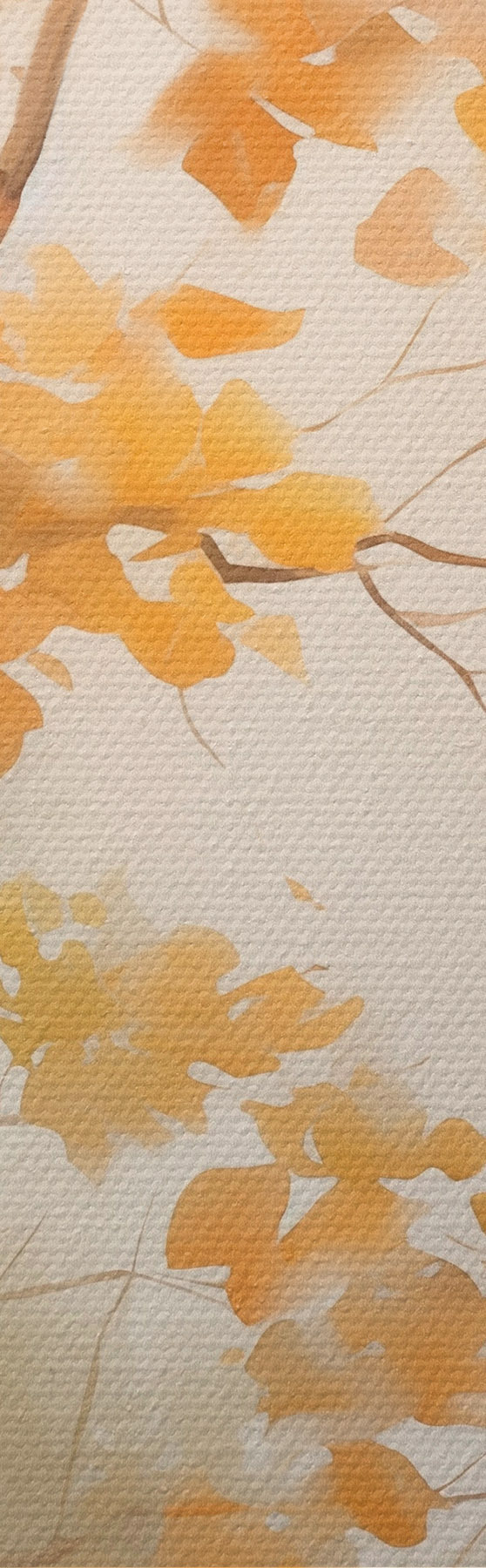 Fototapete Herbstliche Äste mit orangefarbenen Blättern in einem Wald mit sanftem Licht s45940