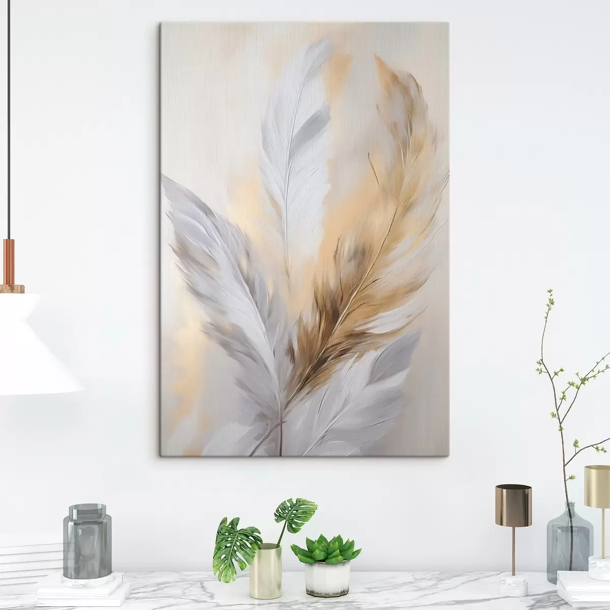 Gemälde Federn mit orangefarbenen Akzenten, strukturierte minimalistische Komposition, moderne Kunst Art. s45945