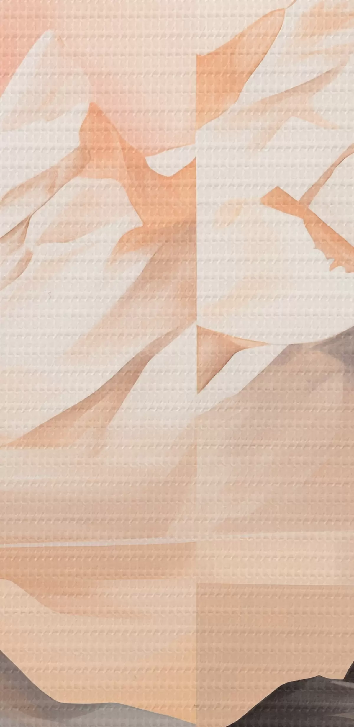 Fototapete Abstrakte Landschaft mit Bergen und einem See, Pastellfarben, minimalistischer Stil s45948
