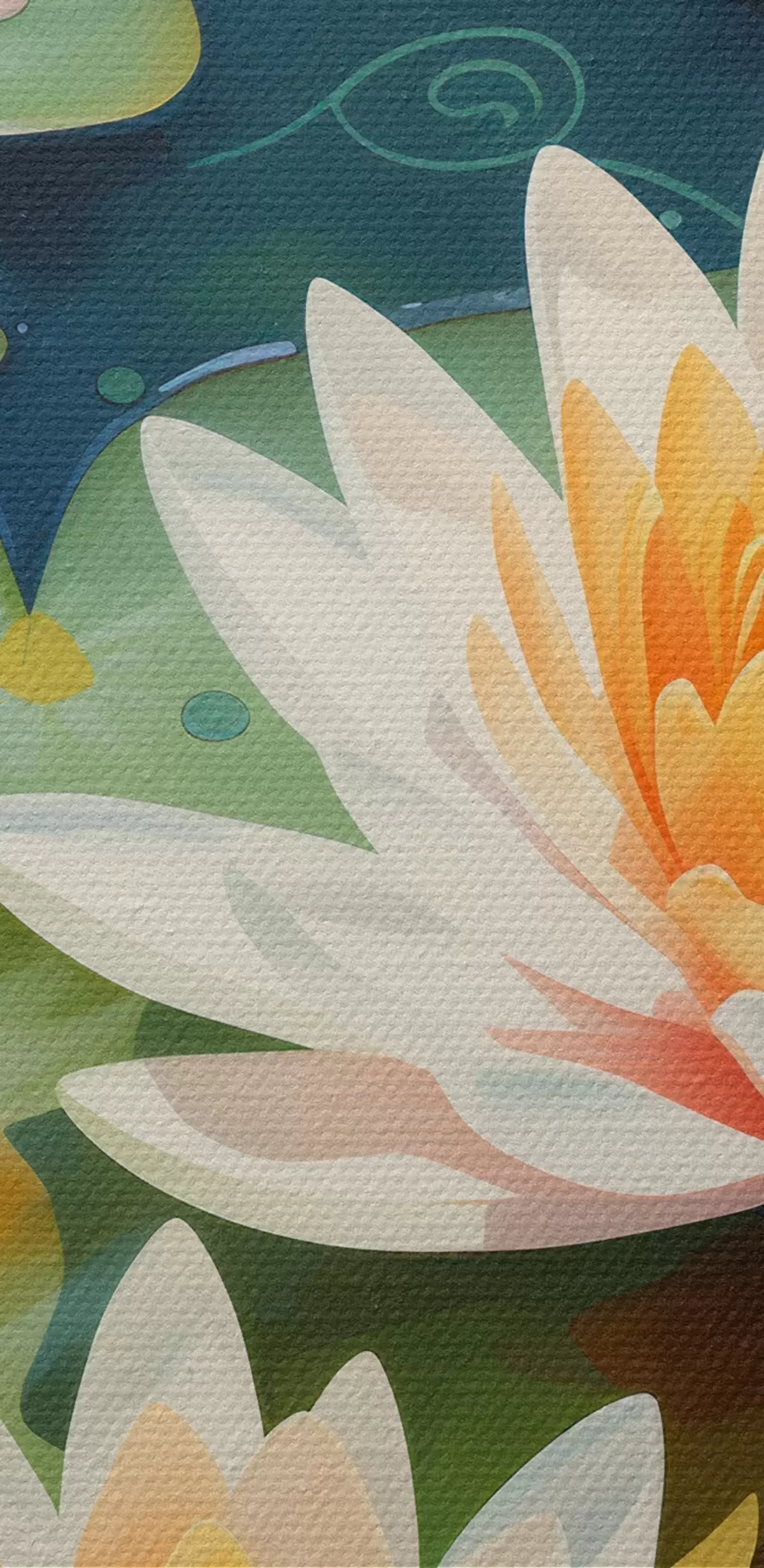 Drei Materialtypen stehen zur Verfügung: Economic Canvas - ein dichtes und haltbares Material für den Digitaldruck, identisch mit Malerleinwand, wasserfeste Oberfläche, realistische Wiedergabe von Details, mittelkörniges Material. Premium Canvas - die Textur ähnelt der einer Malerleinwand (verwobene kleine Fäden). Weiche, detaillierte Wiedergabe des Bildes auf einer matten Oberfläche. Eco-Premium - hochwertiges Gewebe aus 100% Baumwolle. Dank der natürlichen Baumwollfasern ist das Material langlebig und verschleißfest. Hervorragende Farbwiedergabe und Detailtreue.