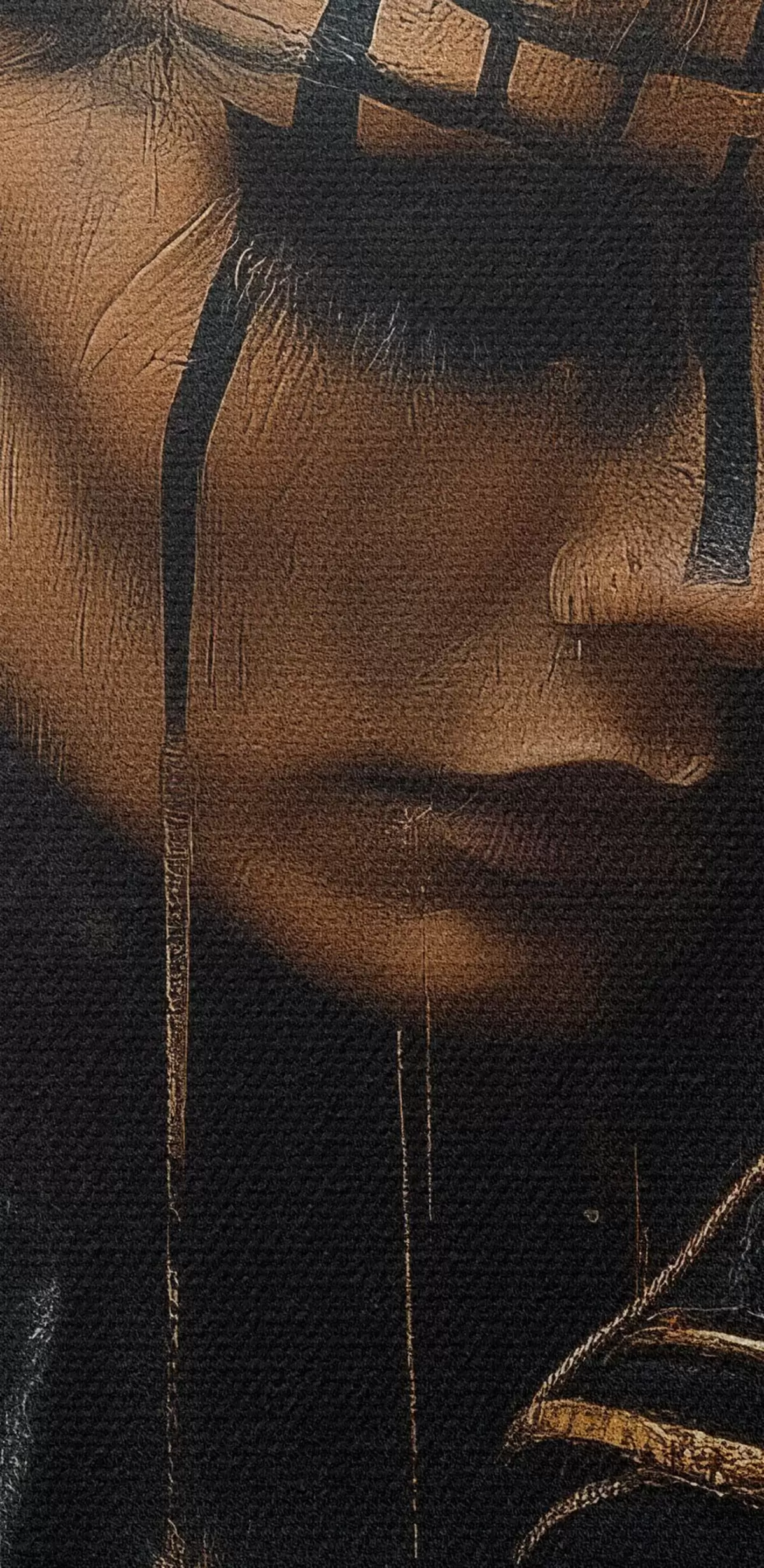 Um die Leinwand auf Keilrahmen zu spannen, ohne das Bild zu beschädigen, verwenden wir ein gespiegeltes Bild.