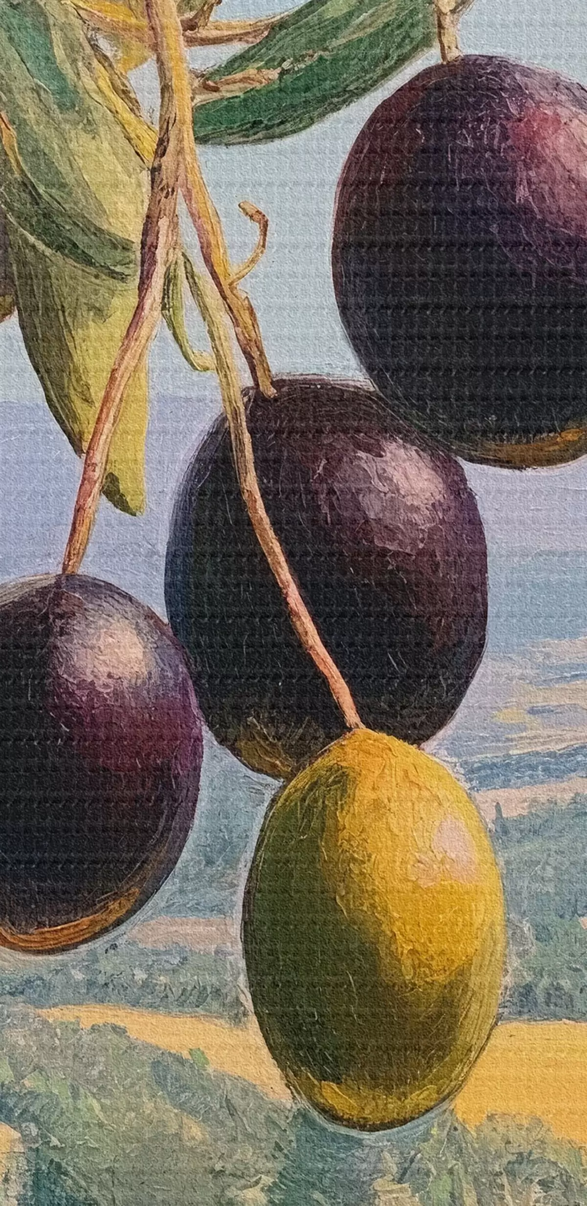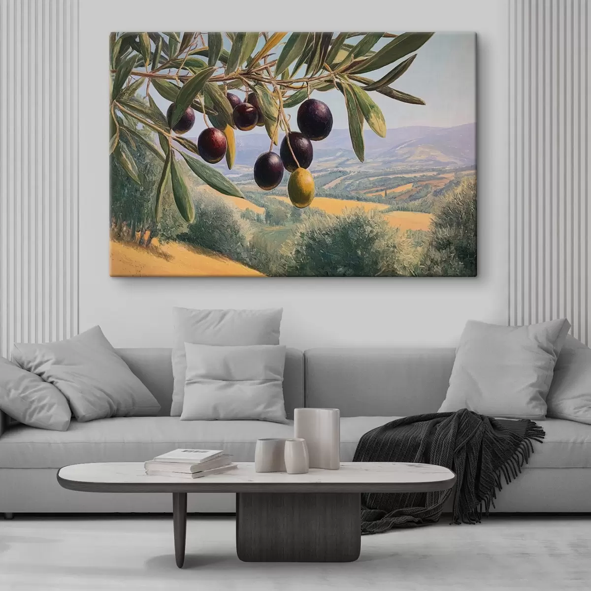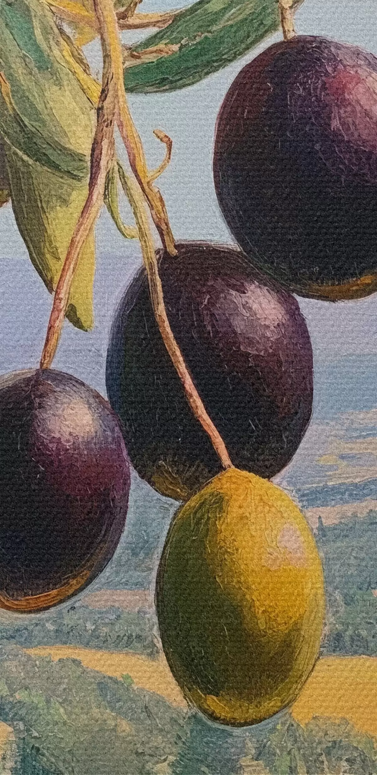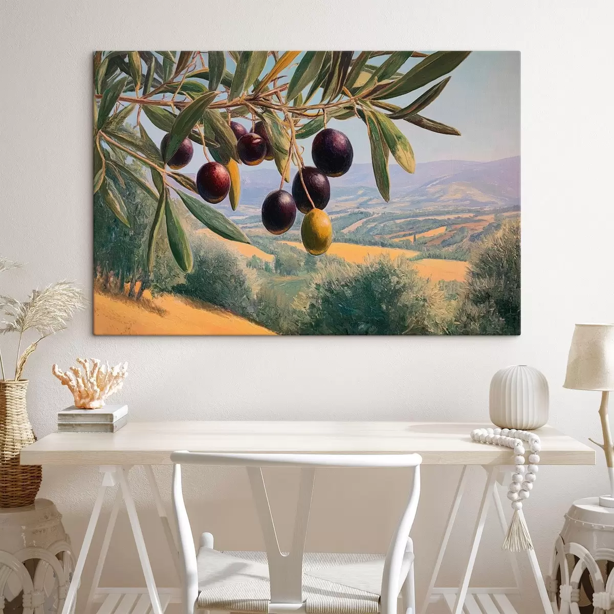 Gemälde Olivenzweig mit dunklen Früchten vor einer Sommerlandschaft Art. s46150