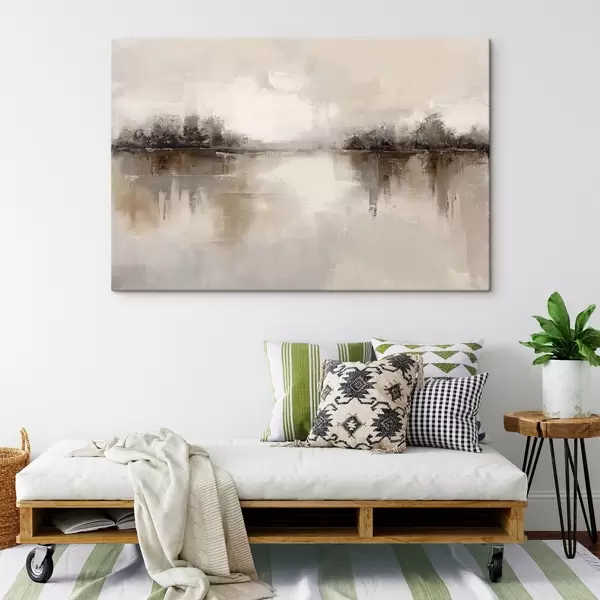 Gemälde Weiche Landschaft mit einem See in warmen Beige-Grau-Tönen Art. s46158