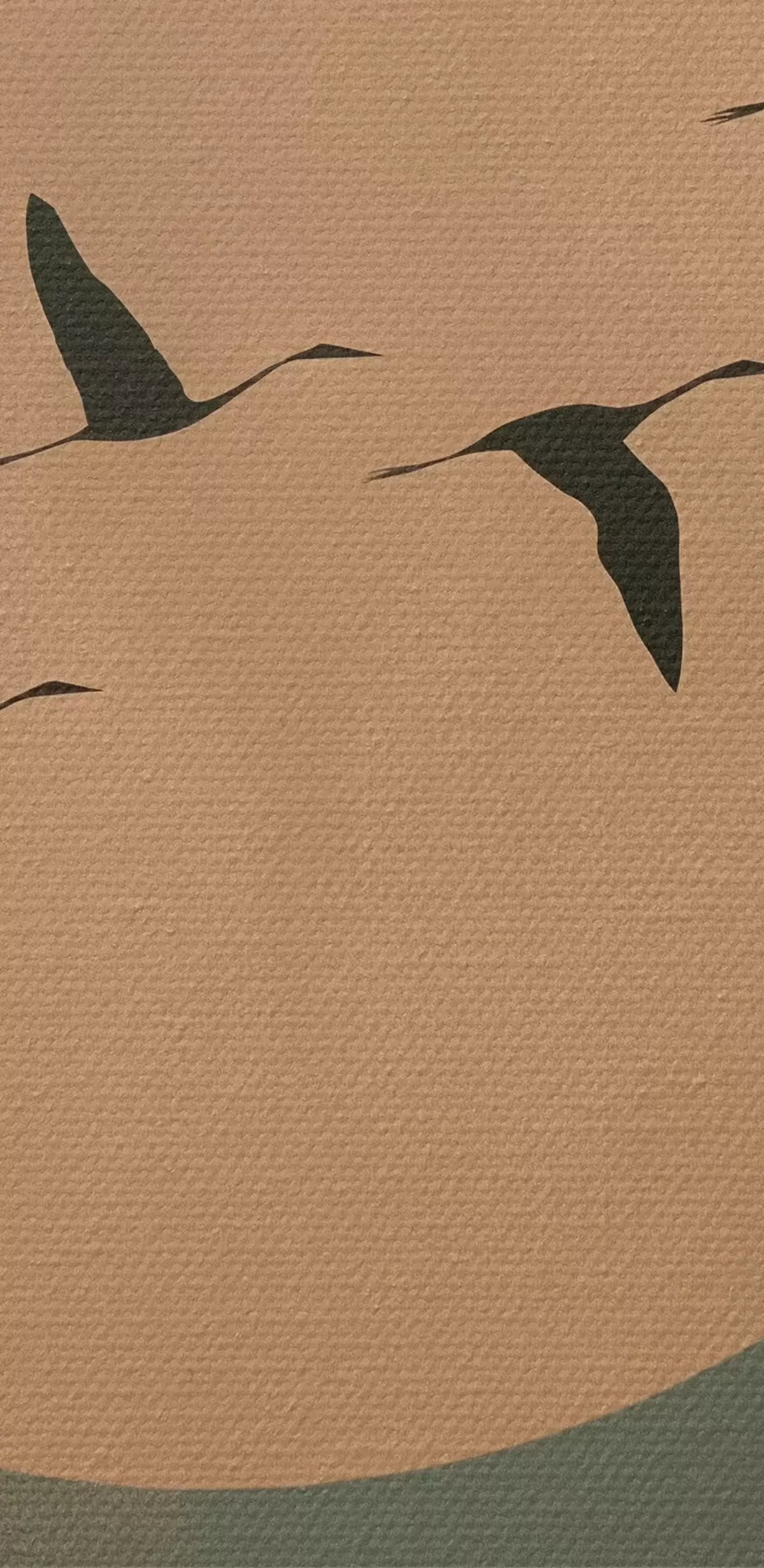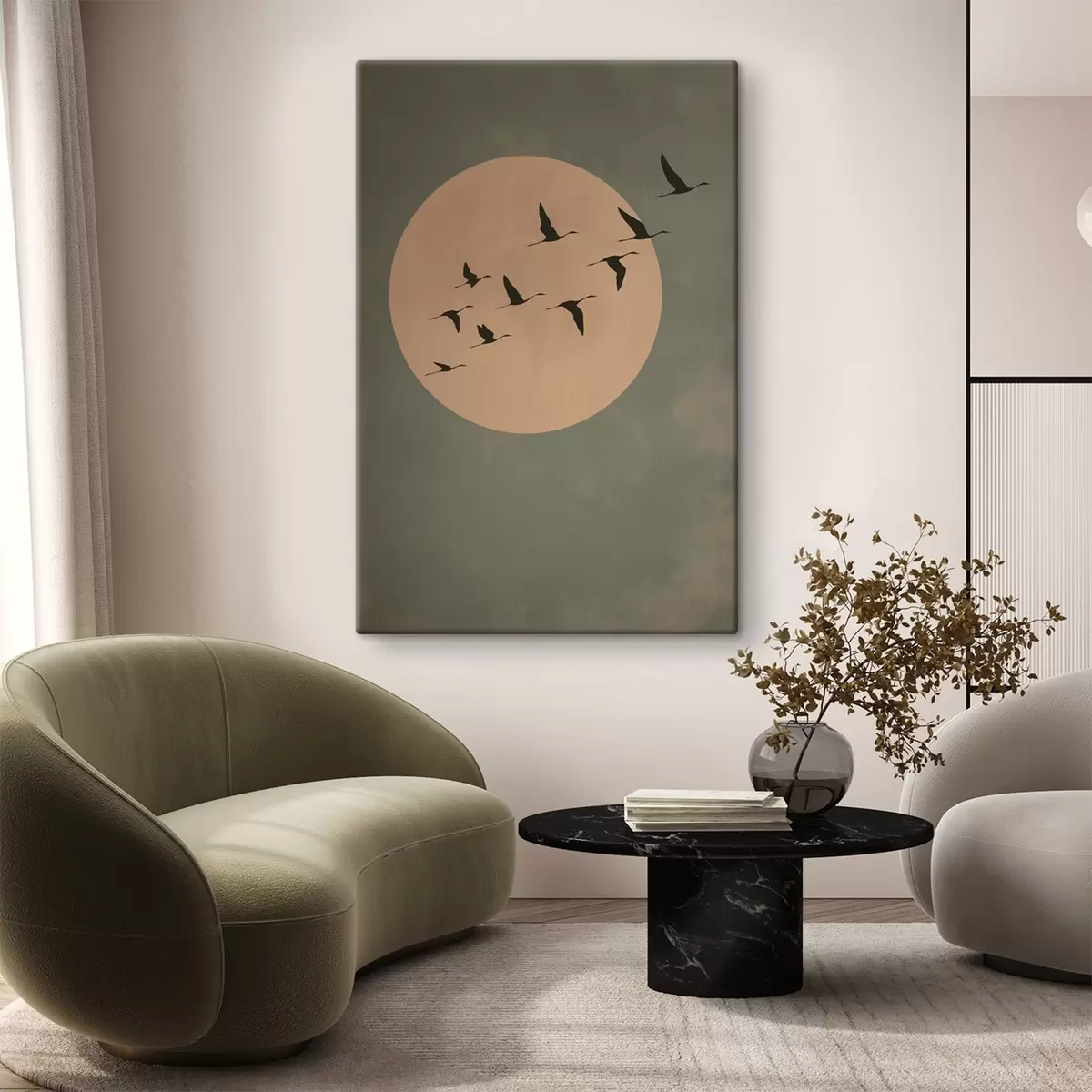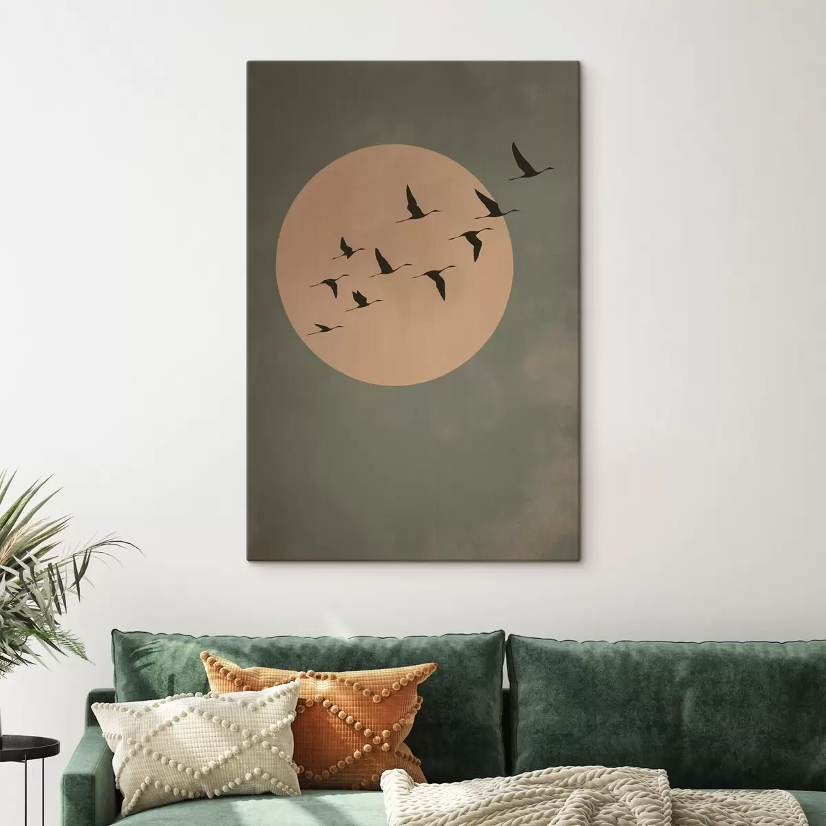 Gemälde Ein Vogelschwarm fliegt vor einem großen, warmen Mond Art. s46162