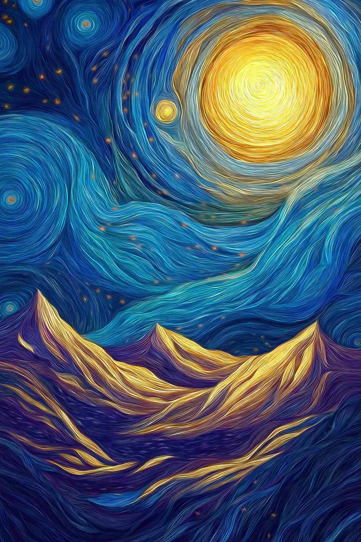 Gemälde Strahlender Sternenhimmel über den Berggipfeln Art. s46168