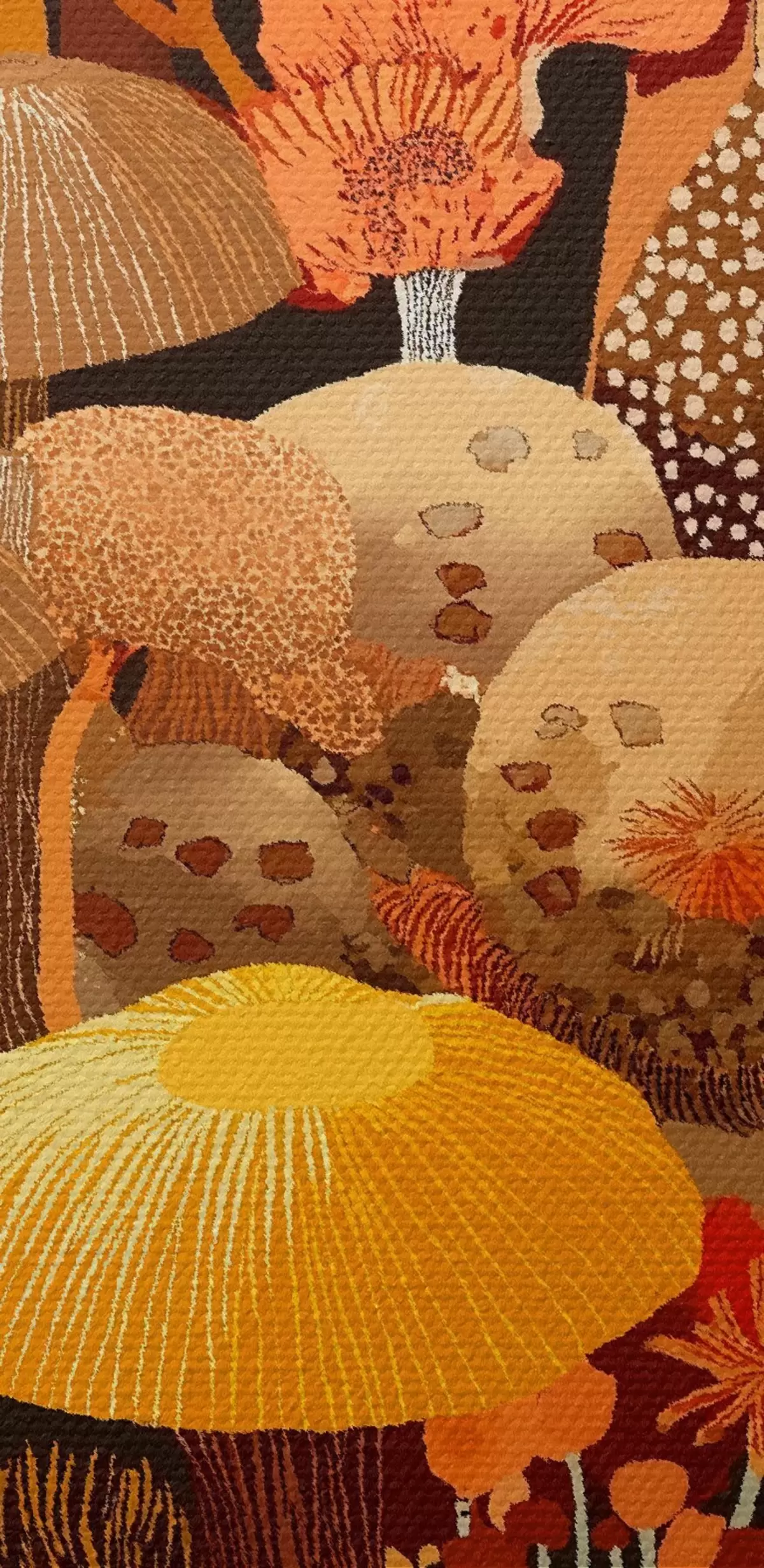 Gemälde Komposition verschiedener Waldpilze in warmen Farbtönen Art. s46170