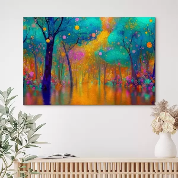 Gemälde Lebendiger Fantasiewald mit Spiegelungen im Wasser Art. s46171
