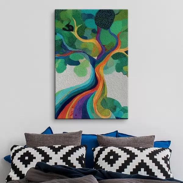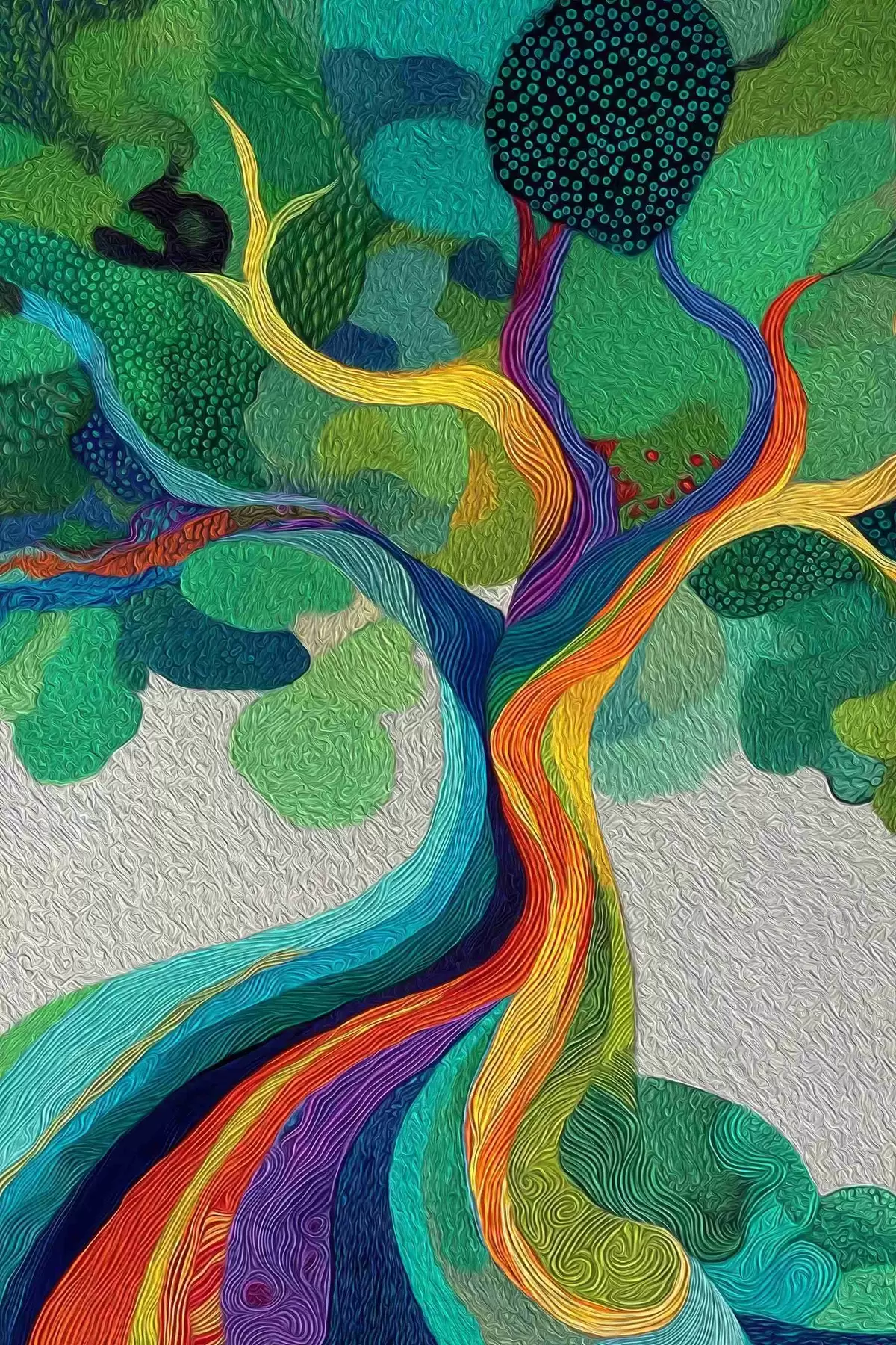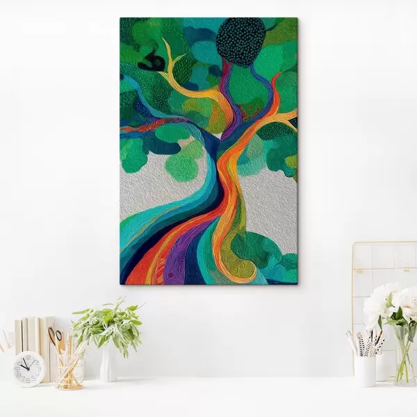 Gemälde Baum mit Regenbogenästen auf grünem Hintergrund Art. s46173