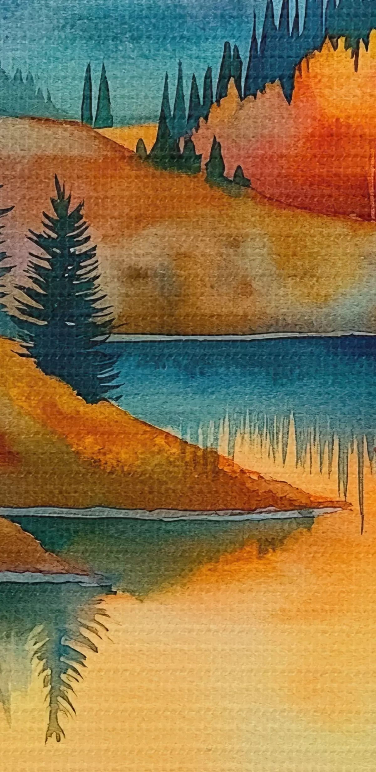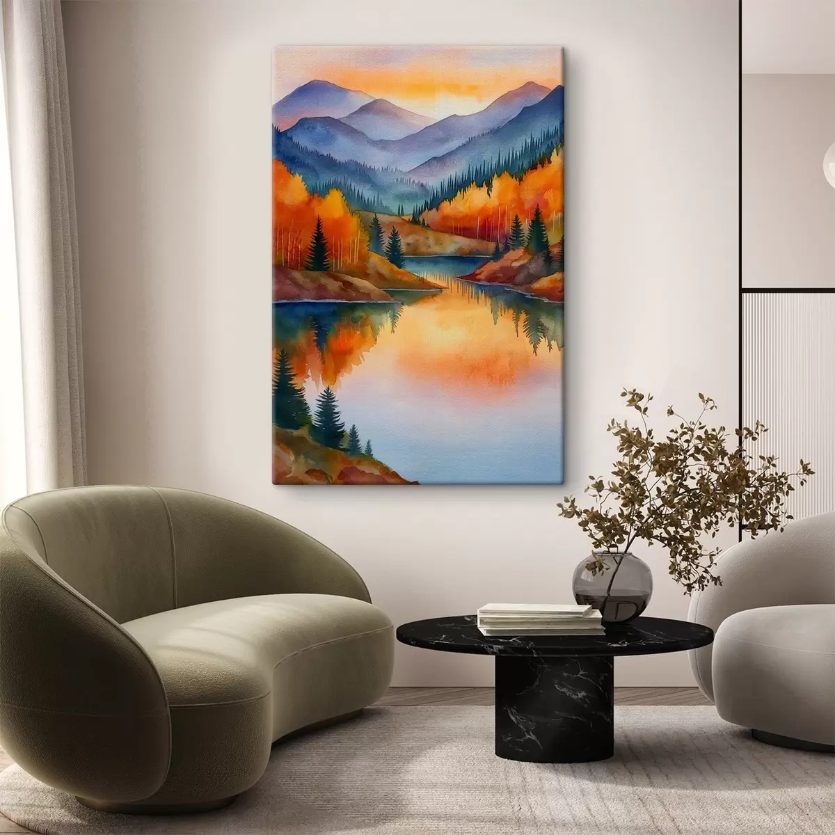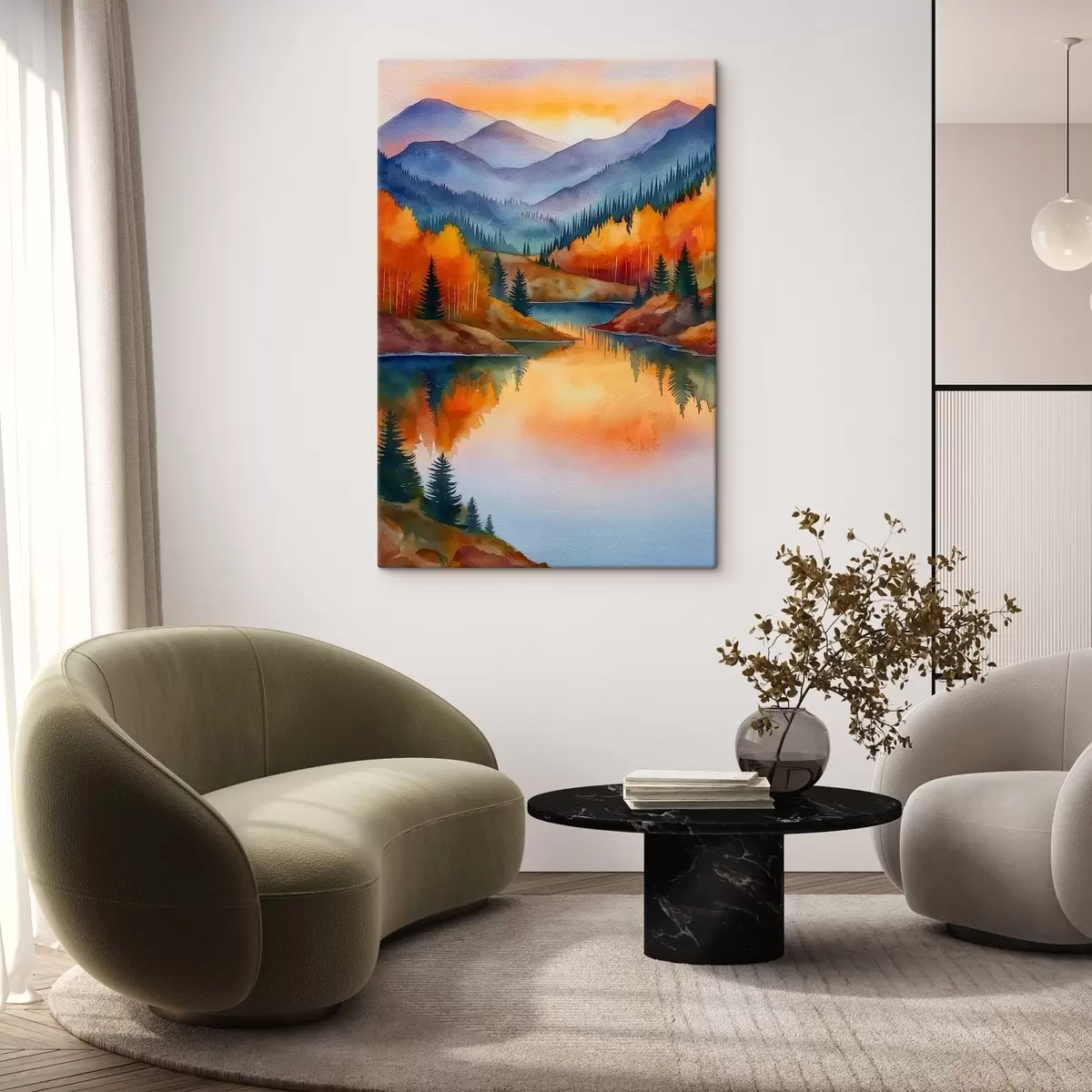 Gemälde Herbstlandschaft mit Bergen, die sich in einem ruhigen See spiegeln Art. s46174