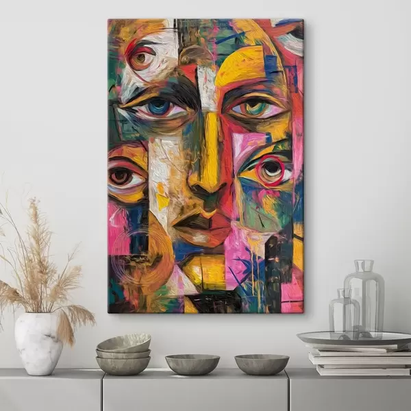 Gemälde Abstrakte Gesichter mit leuchtenden geometrischen Formen Art. s46175