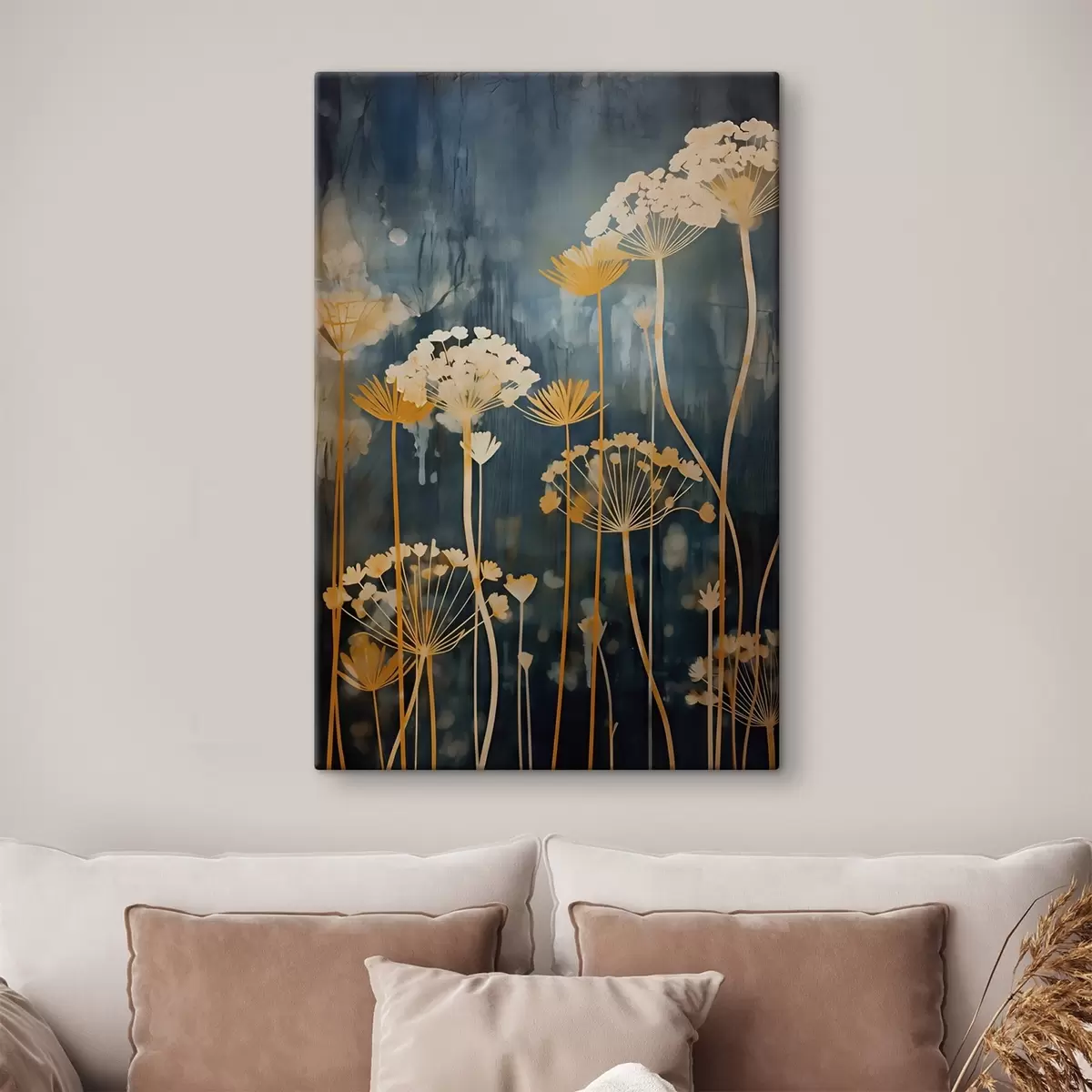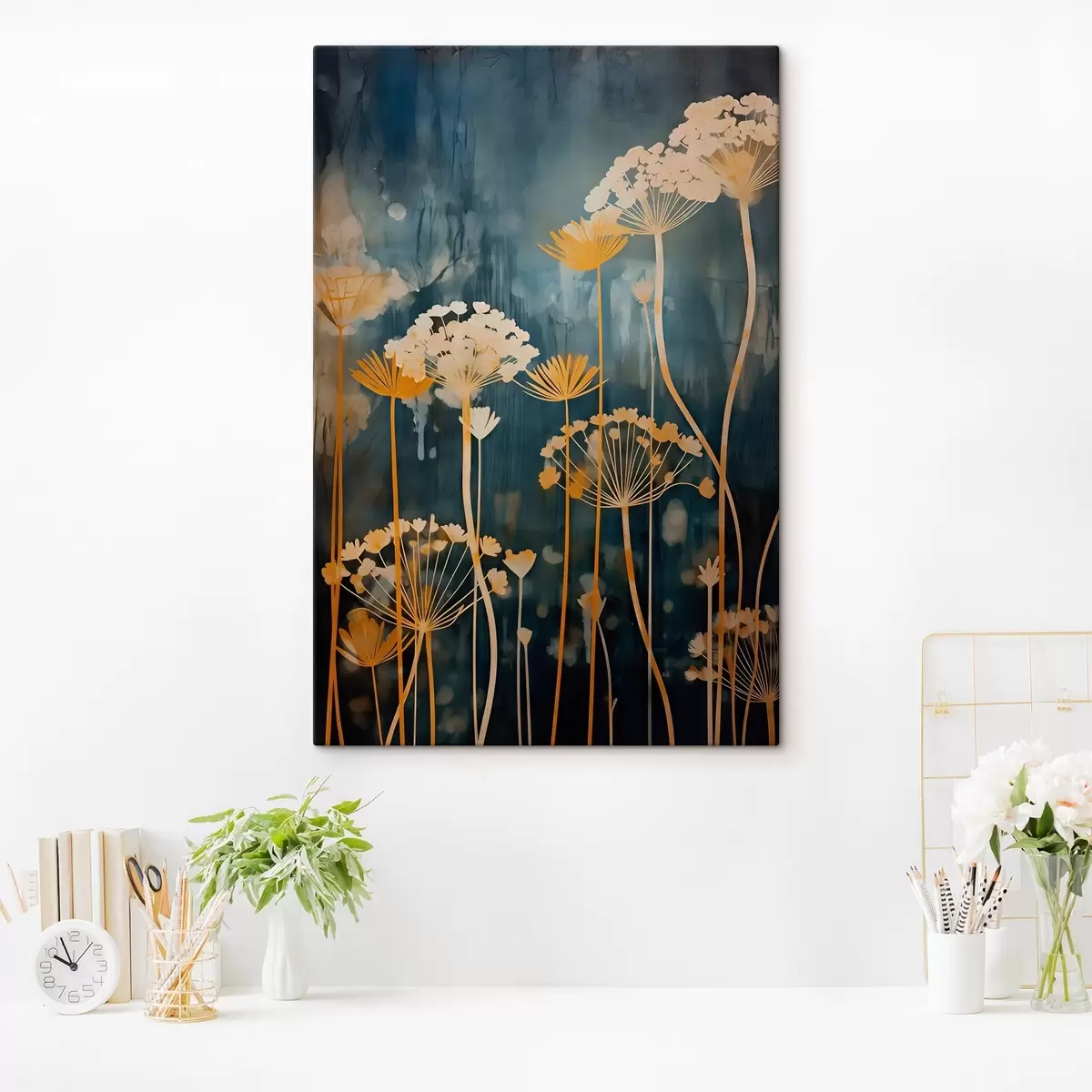 Gemälde Stilisierte Blumen mit dünnen Stielen auf dunklem Hintergrund Art. s46188