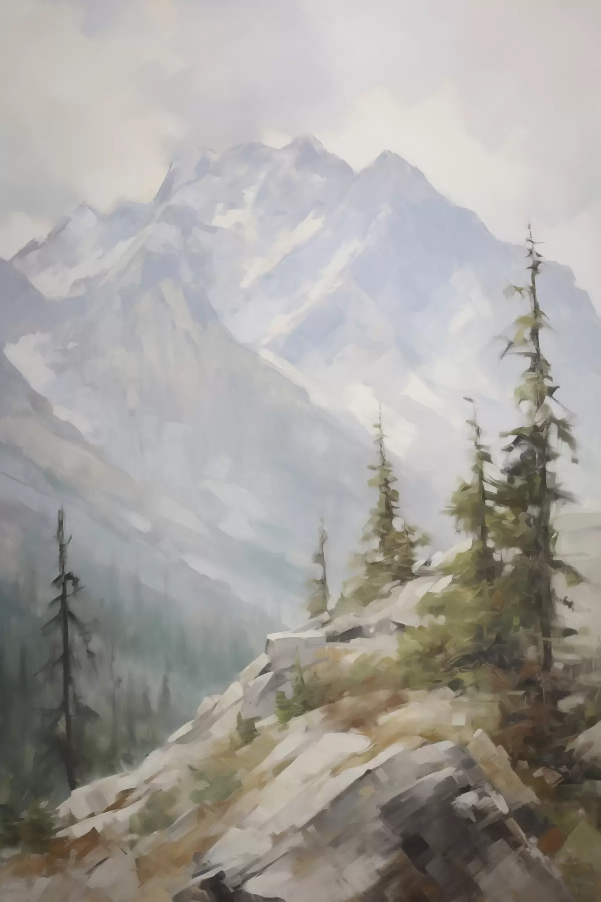 Gemälde Fichten vor dem Hintergrund der Berge Art. s46202