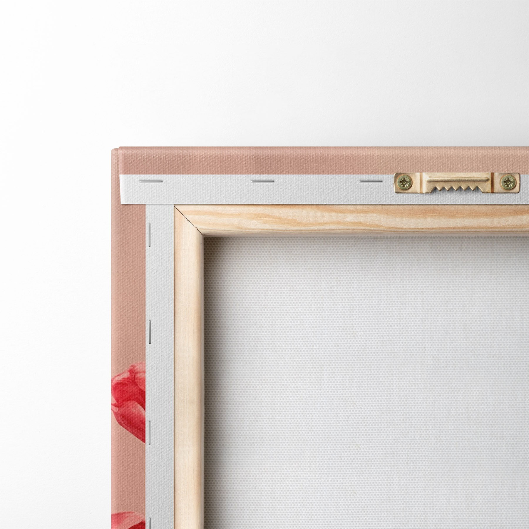 Um die Leinwand auf Keilrahmen zu spannen, ohne das Bild zu beschädigen, verwenden wir ein gespiegeltes Bild.