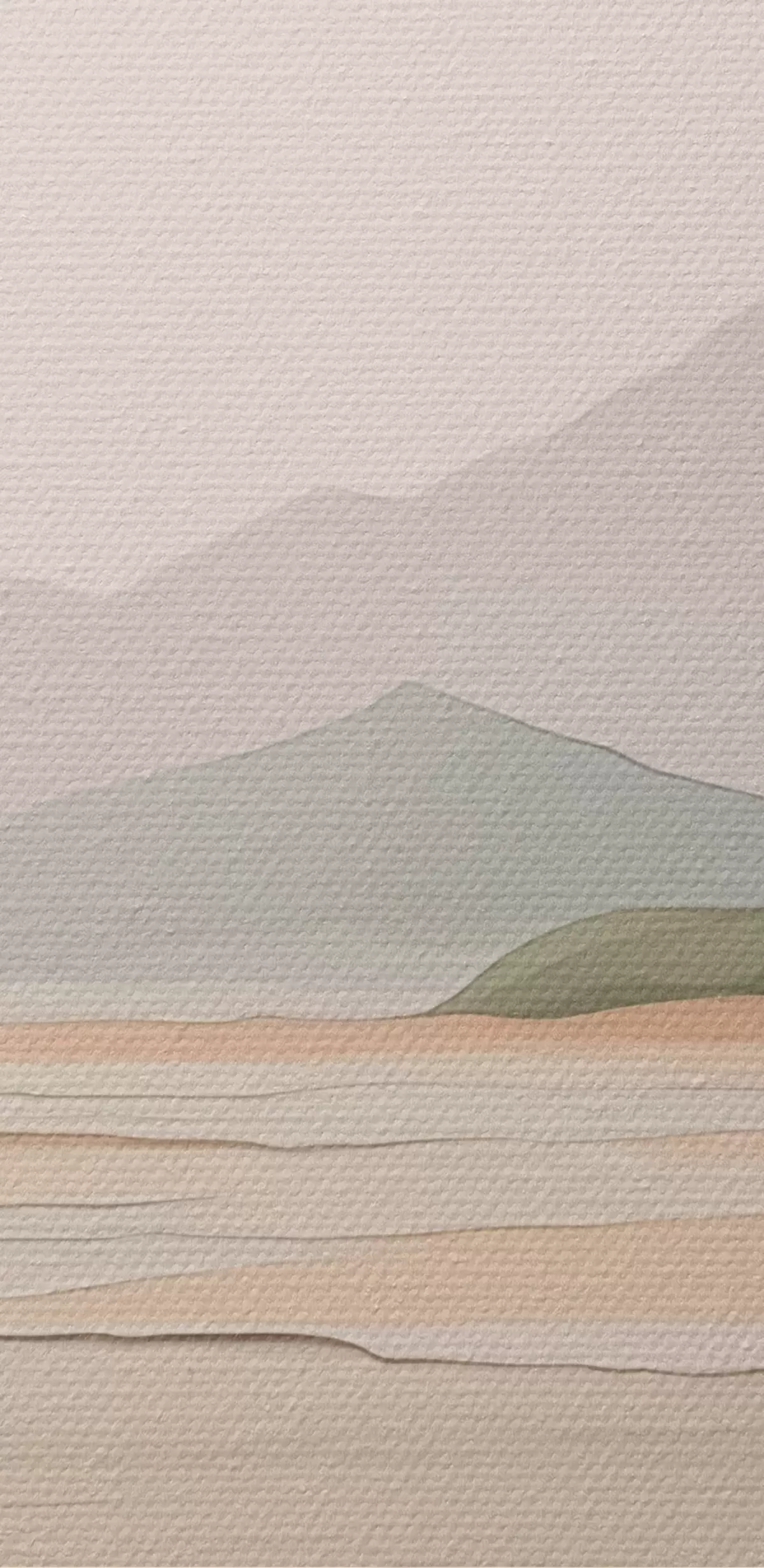 Fototapete Minimalistische Landschaft mit Bergen und Ufer s46248