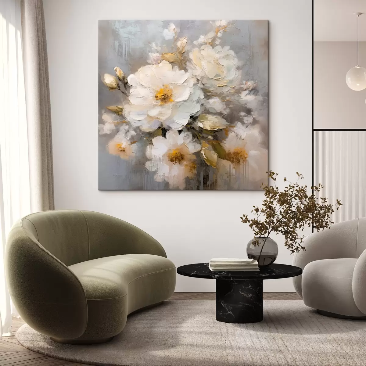 Drei Materialtypen stehen zur Verfügung: Economic Canvas - ein dichtes und haltbares Material für den Digitaldruck, identisch mit Malerleinwand, wasserfeste Oberfläche, realistische Wiedergabe von Details, mittelkörniges Material. Premium Canvas - die Textur ähnelt der einer Malerleinwand (verwobene kleine Fäden). Weiche, detaillierte Wiedergabe des Bildes auf einer matten Oberfläche. Eco-Premium - hochwertiges Gewebe aus 100% Baumwolle. Dank der natürlichen Baumwollfasern ist das Material langlebig und verschleißfest. Hervorragende Farbwiedergabe und Detailtreue.