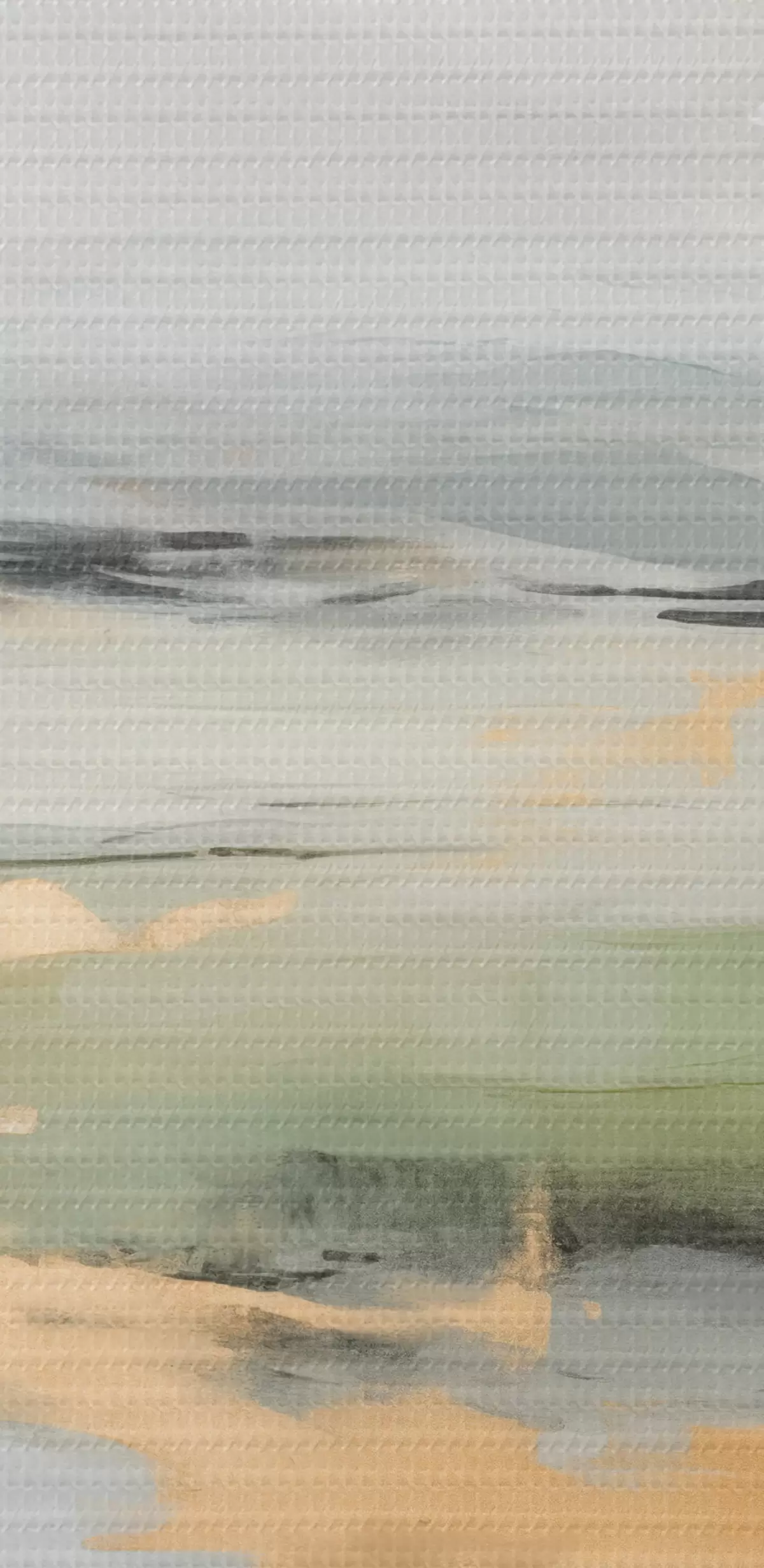 Gemälde Abstrakte Landschaft mit gelben Akzenten, eine minimalistische Komposition aus Land, Wasser und Himmel, mit gedämpften Farben Art. s46269