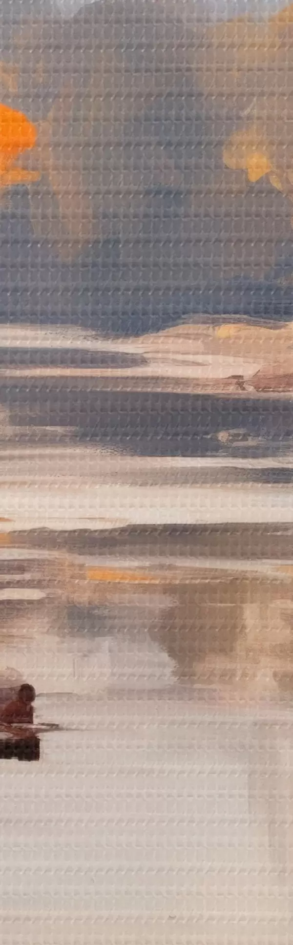 Um die Leinwand auf Keilrahmen zu spannen, ohne das Bild zu beschädigen, verwenden wir ein gespiegeltes Bild.