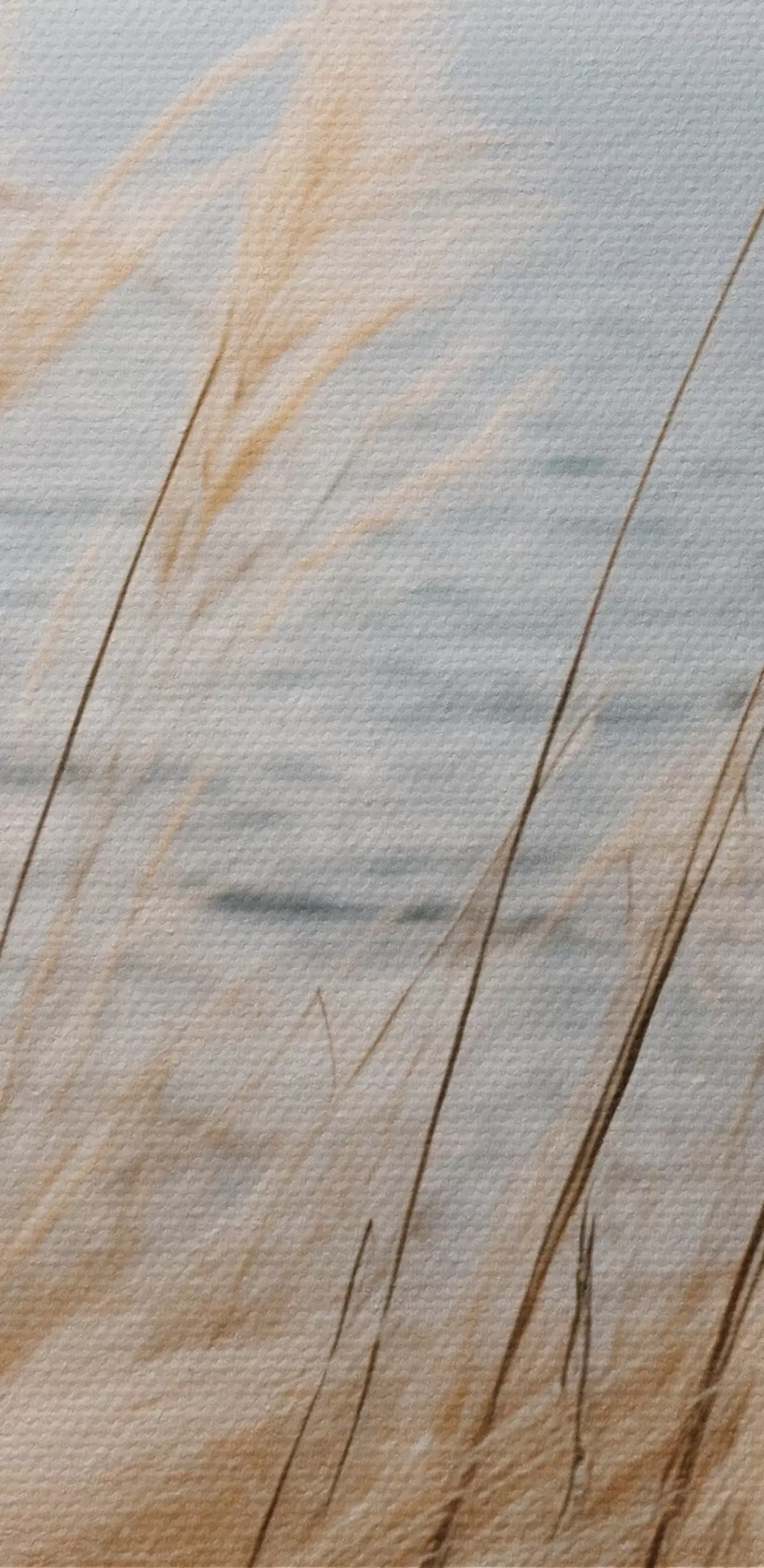 Fototapete Pampasgras mit einem See und Bergen im Hintergrund, sanfte Beleuchtung, gedämpfte Farben, naturalistischer Stil s46283