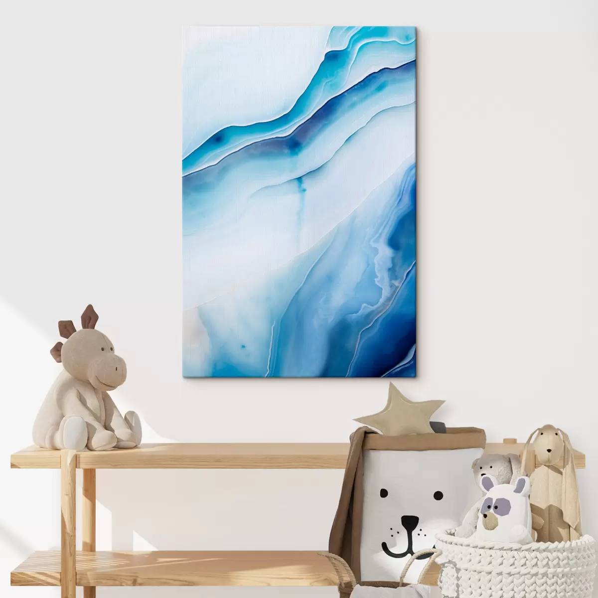Gemälde Abstrakter blau-weißer Achatdruck, wirbelnde Linien und Farbverläufe, glatte Textur, moderne Kunst, minimalistisch Art. s46291