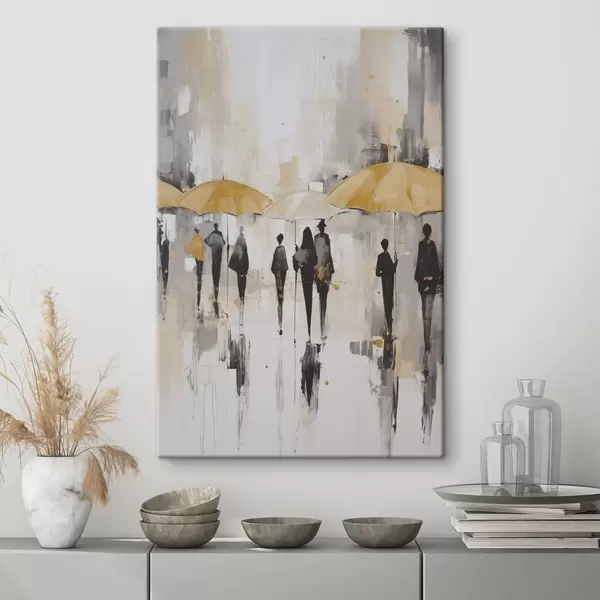 Gemälde Abstraktion von Menschen mit Regenschirmen Art. s46304
