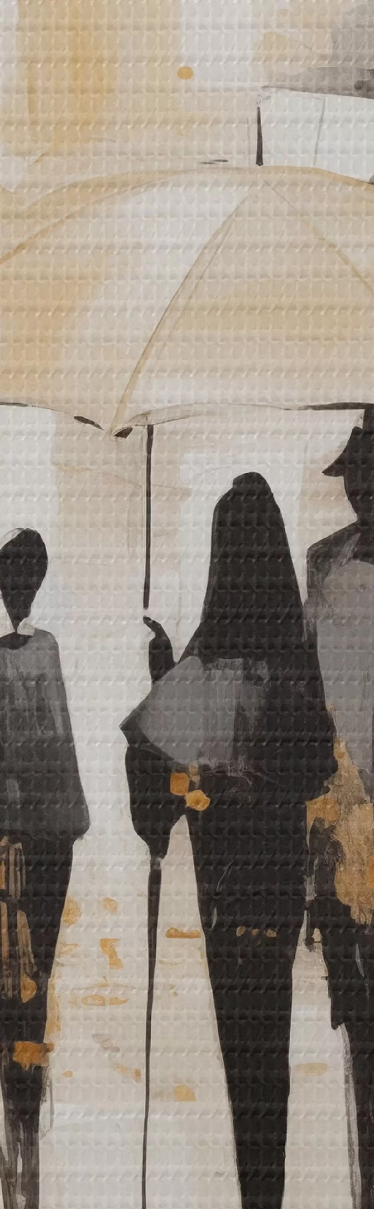 Fototapete Abstraktion von Menschen mit Regenschirmen s46304
