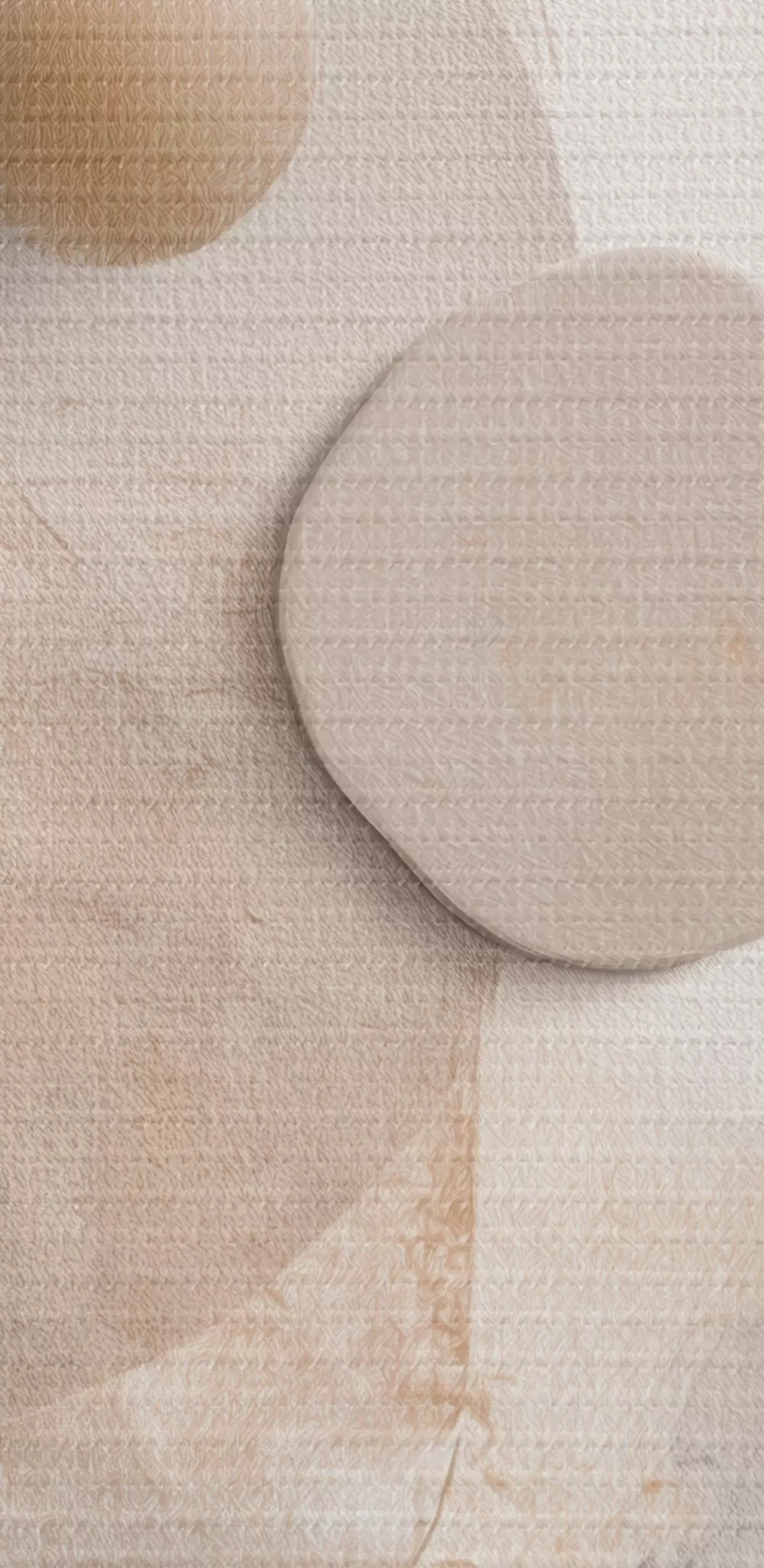 Gemälde Getrocknete Palmblätter und 3D-Kreise in Beigetönen Art. s46310