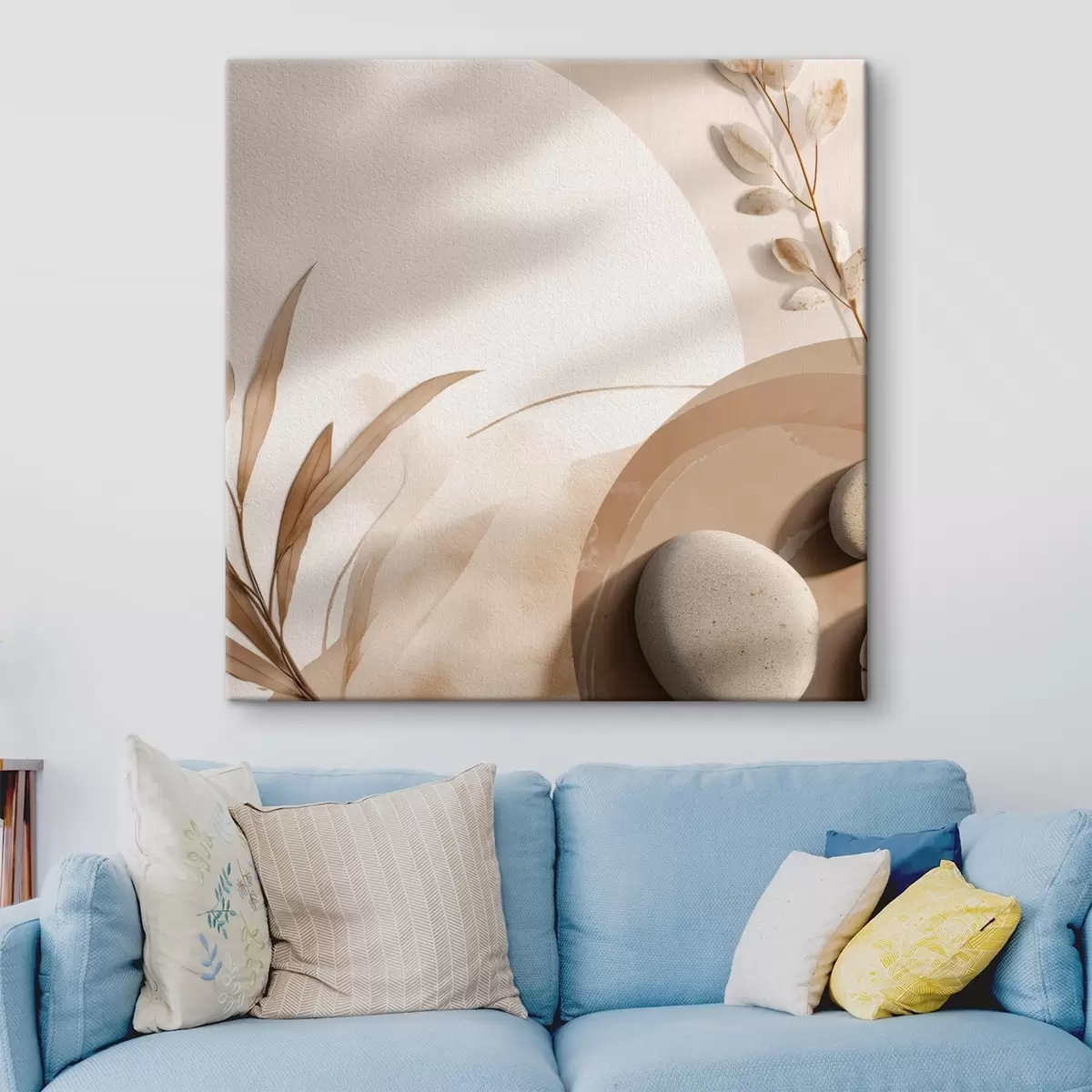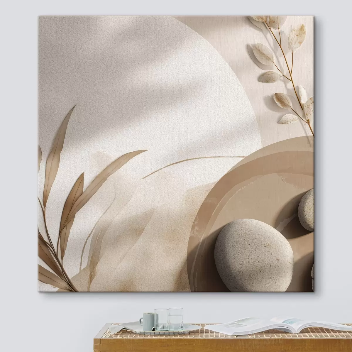 Gemälde Steine und Schatten an der Wand in Beigetönen Art. s46311