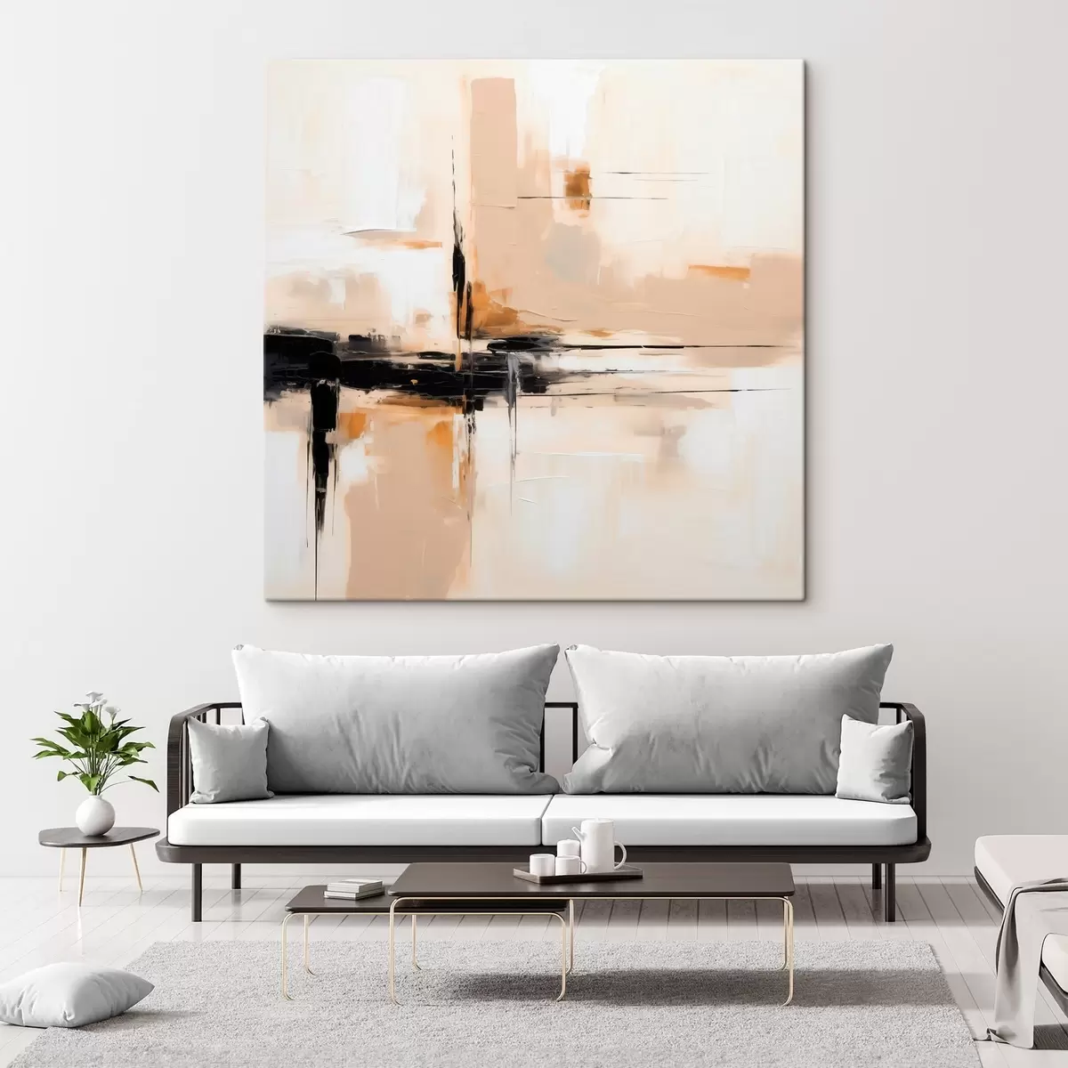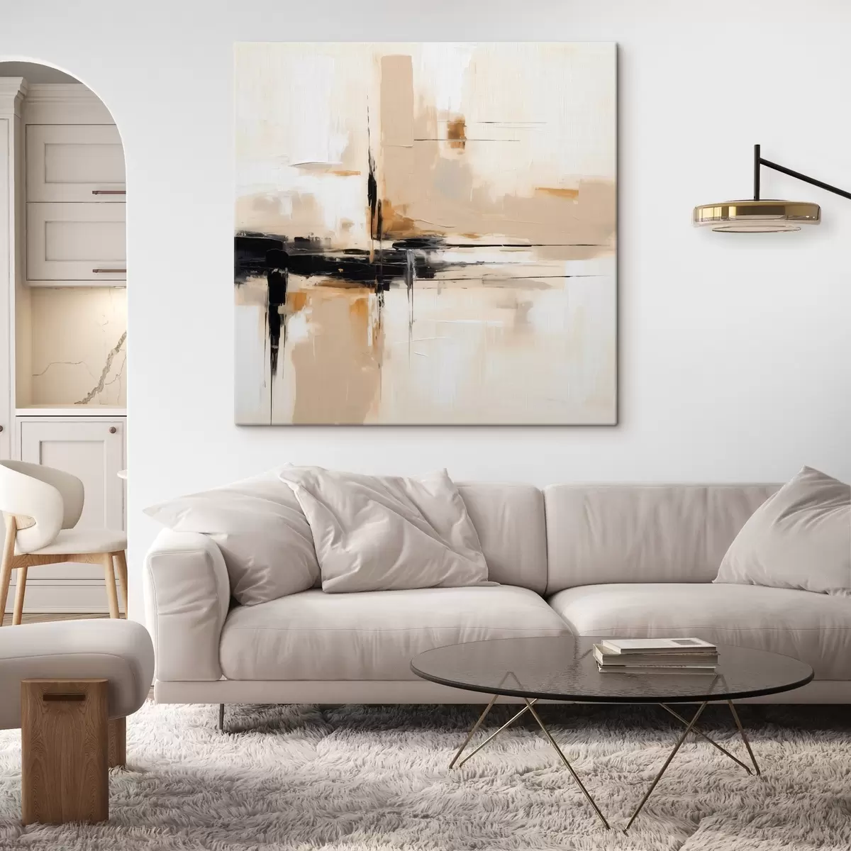 Gemälde Beige und Schwarz, vertikale Abstraktion im minimalistischen Stil Art. s46326