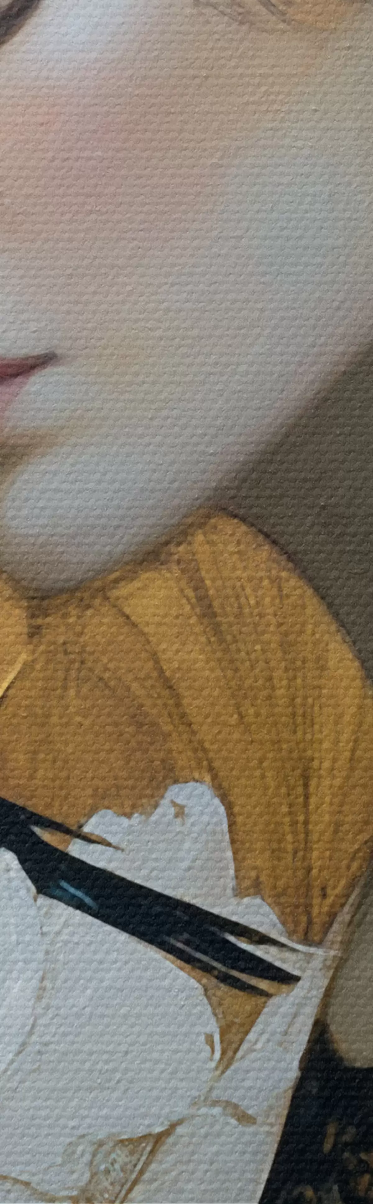 Um die Leinwand auf Keilrahmen zu spannen, ohne das Bild zu beschädigen, verwenden wir ein gespiegeltes Bild.