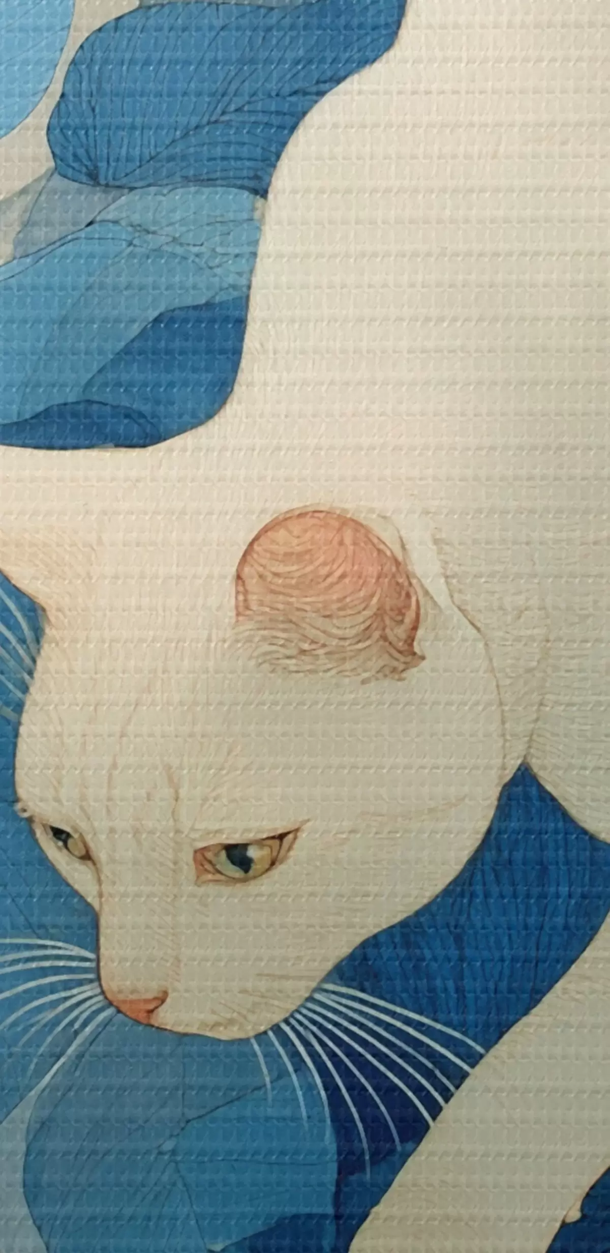 Das Bild kann vorsichtig mit einem trockenen, weichen Tuch oder Schwamm abgewischt werden; es wird nicht empfohlen, feuchte Produkte zu verwenden. Die Verwendung eines feuchten Schwamms ist nur zulässig, wenn das Bild lackiert wurde.