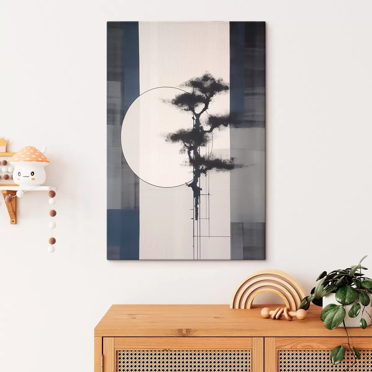 Gemälde Abstraktion. Baum und Sonne. Japanischer Minimalismus Art. s46463