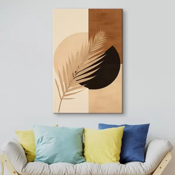 Gemälde Palmwedel über Terrakotta und cremefarbener Geometrie Art. s46490